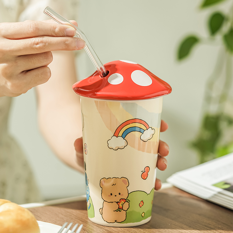 陶瓷带盖马克杯吸管杯大容量家用喝水杯情侣款一对高颜值闺蜜对杯