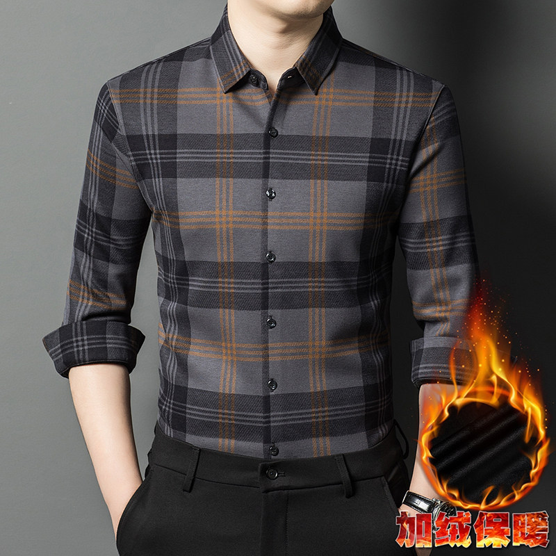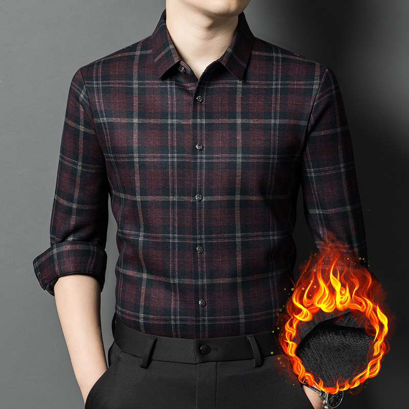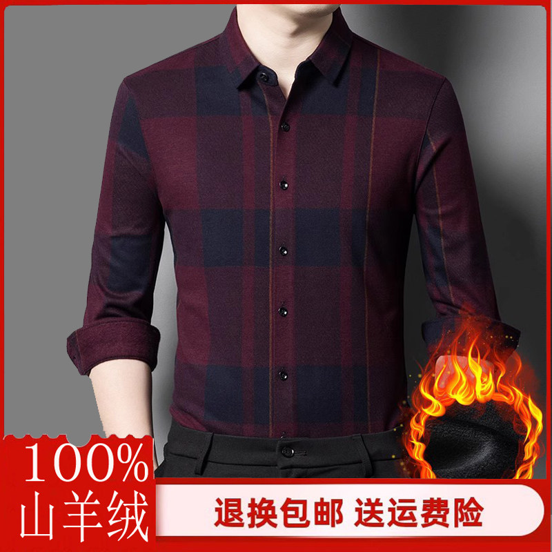 羊绒衬衫男中年高端商务加绒加厚