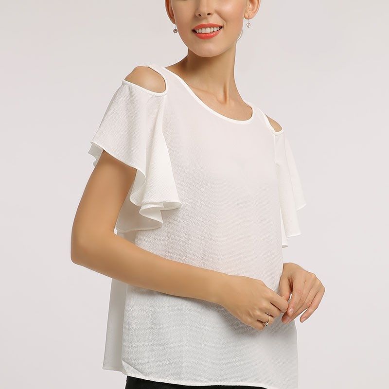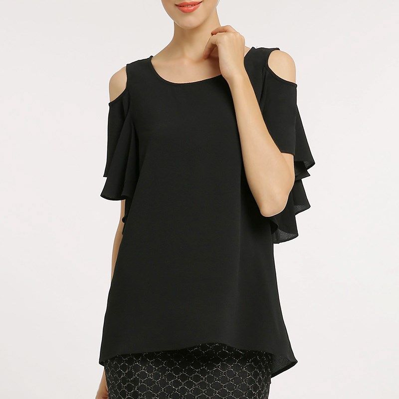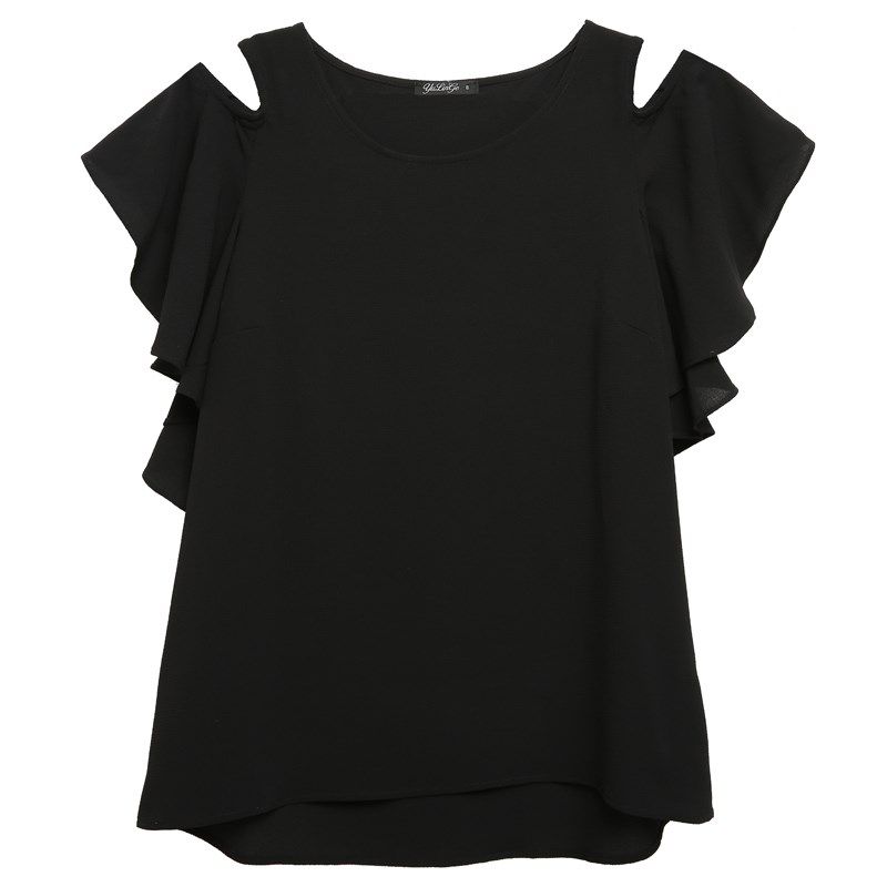 高端小衫时尚露肩洋气一字领白色荷叶短袖上衣黑色雪纺t恤女夏季