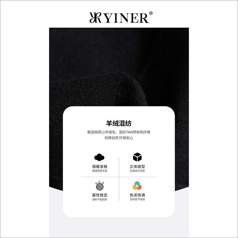 【绵羊毛+羊绒】YINER音儿女装冬季桑蚕丝毛呢大衣长款外套