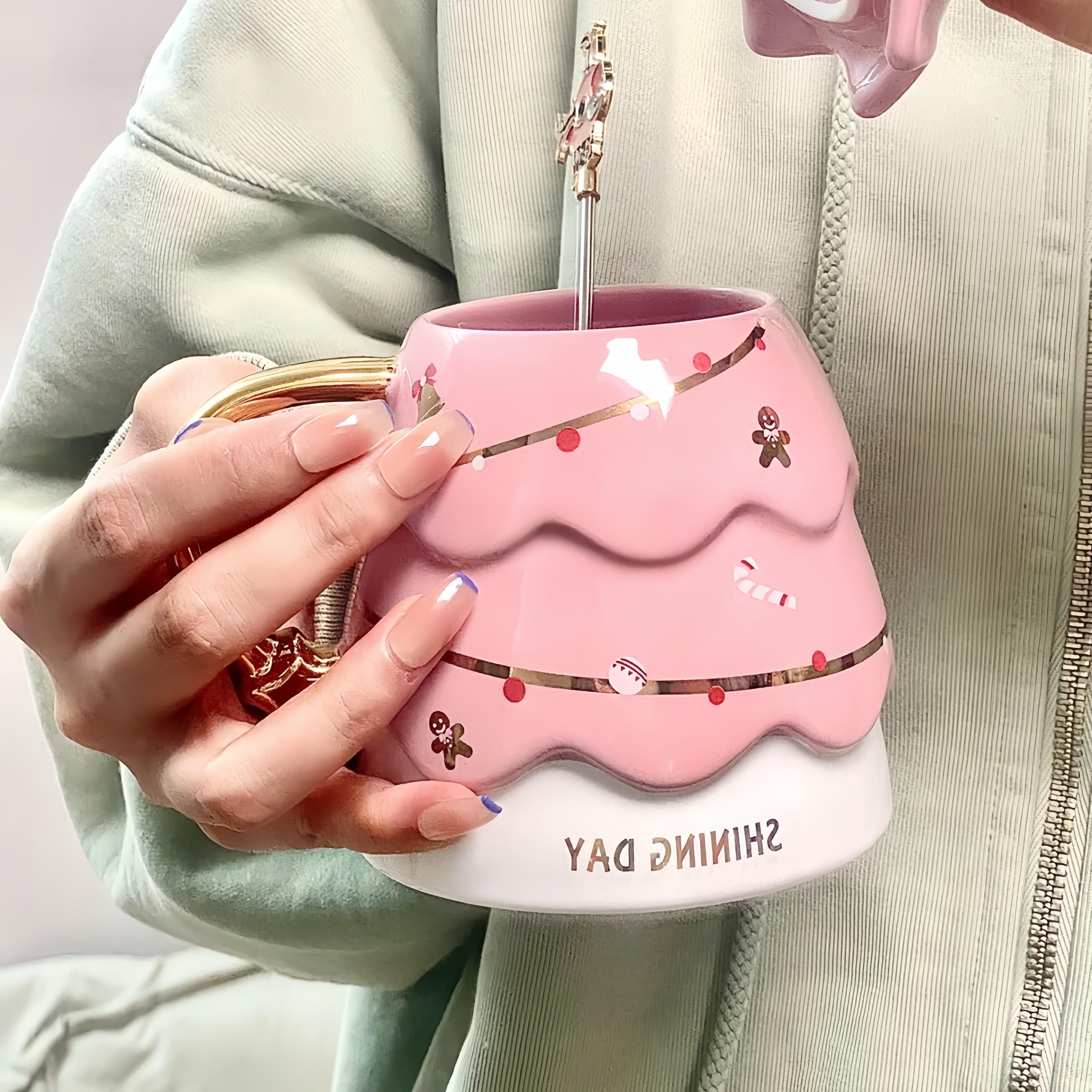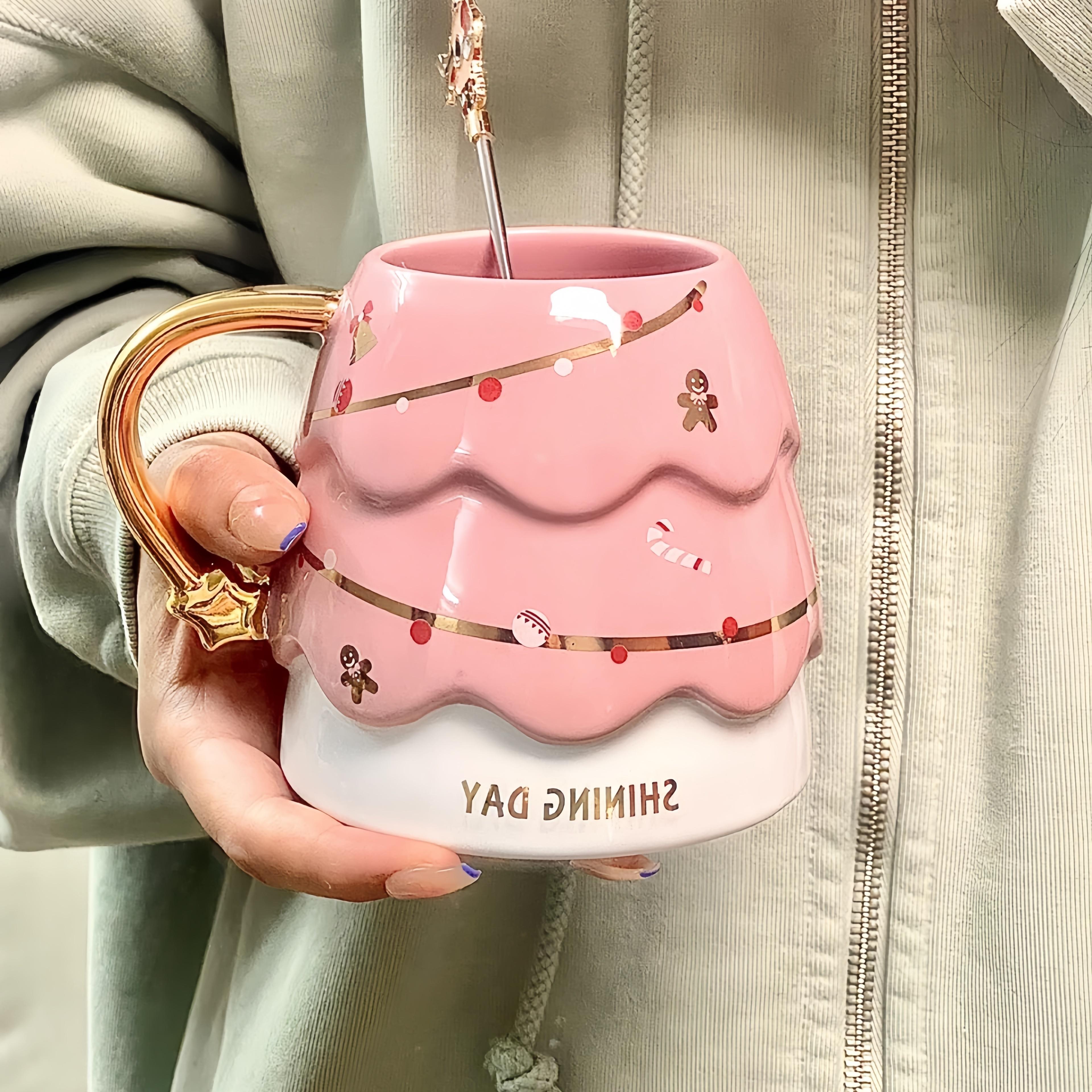 高颜值圣诞节礼物陶瓷马克杯带盖勺送女朋友水杯办公室咖啡杯子款