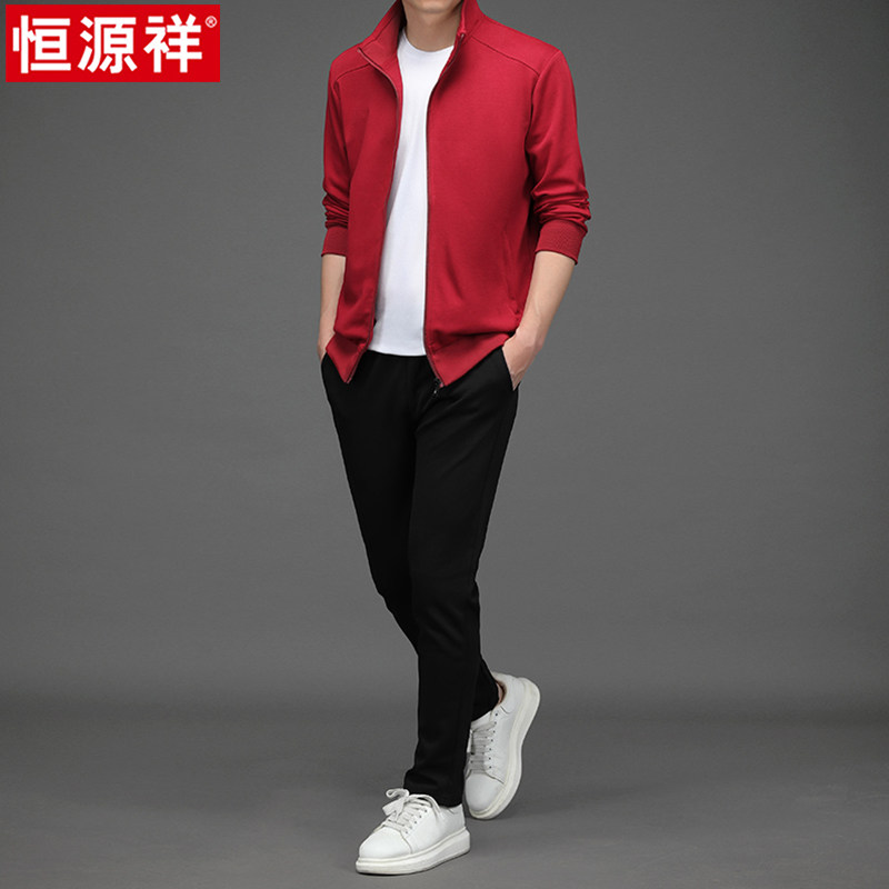 恒源祥跑步运动套装男春秋2025新款休闲两件套中年开衫卫衣休闲裤