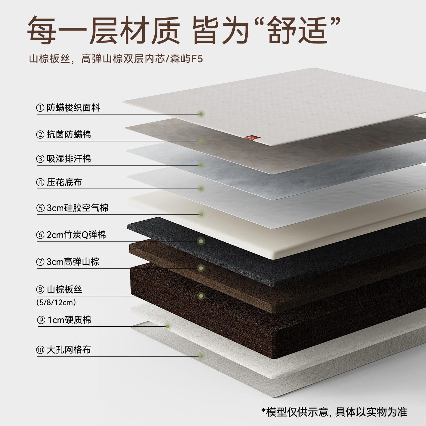 【新品】大自然山棕床垫家用护脊硬垫薄垫子可定制抑菌防螨森屿F5