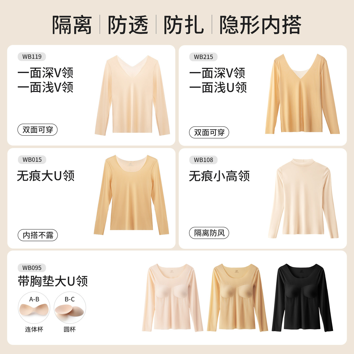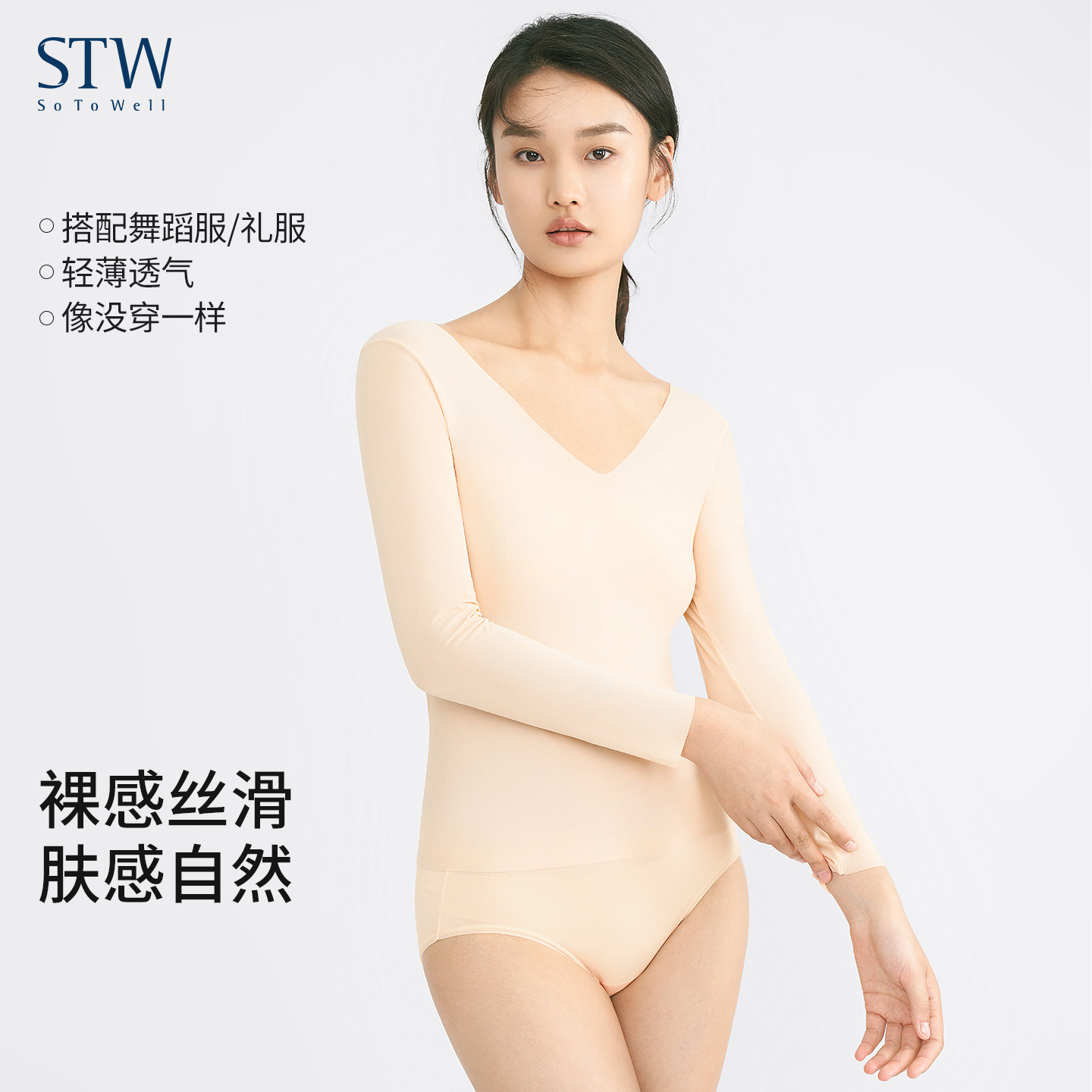 STW秋衣女超薄款无痕内衣肤色v领打底衫上衣隐形肌底衣低领面膜衣