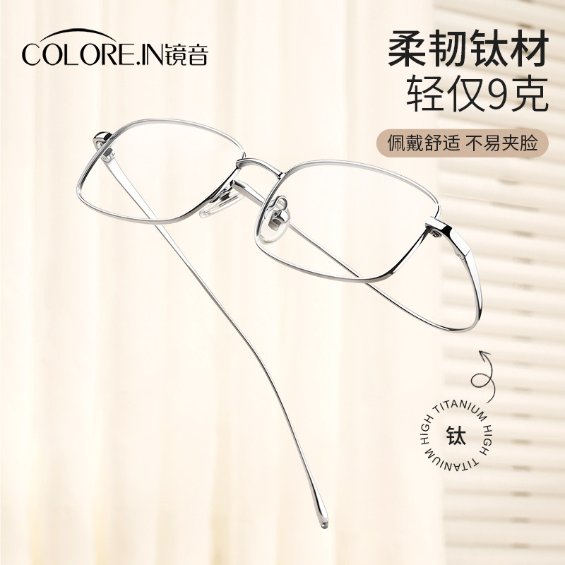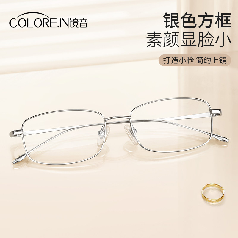 镜音超轻纯钛近视眼镜女可配度数金丝方框素颜显脸小防蓝光眼睛架