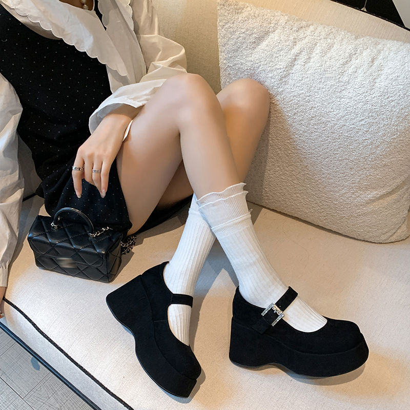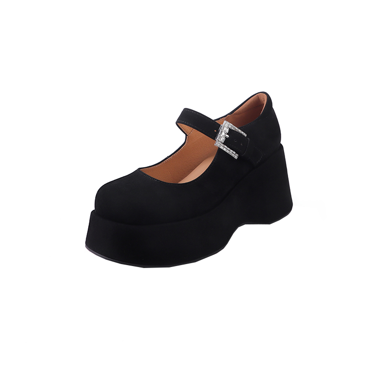 法式真皮玛丽珍鞋女2025年春季新款厚底坡跟增高女鞋百搭通勤单鞋