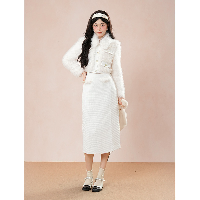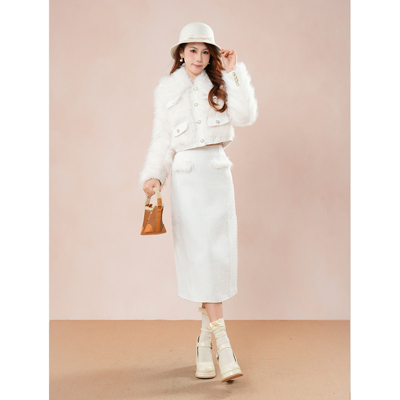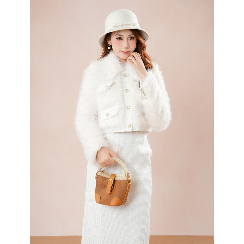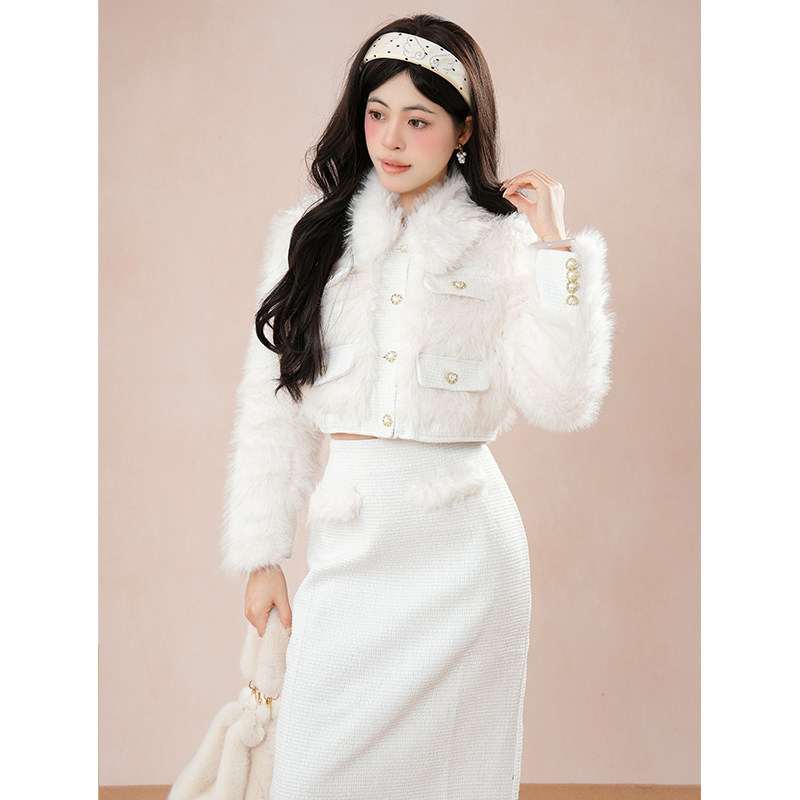 小香风套装裙秋冬女名媛温柔风短款加厚皮草毛毛外套两件套