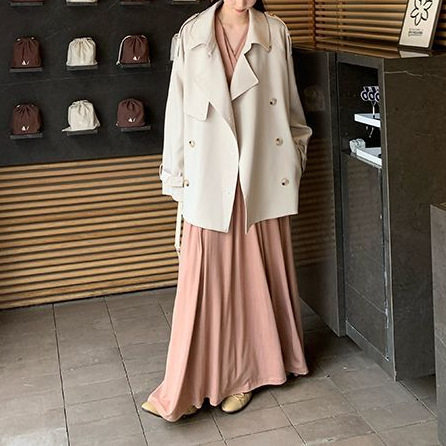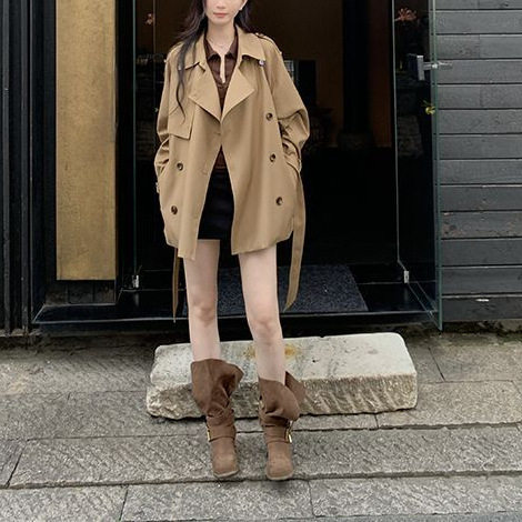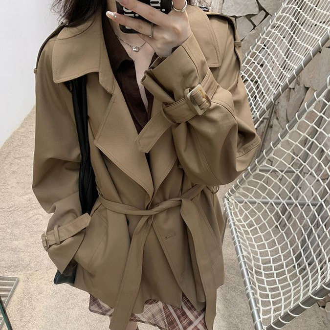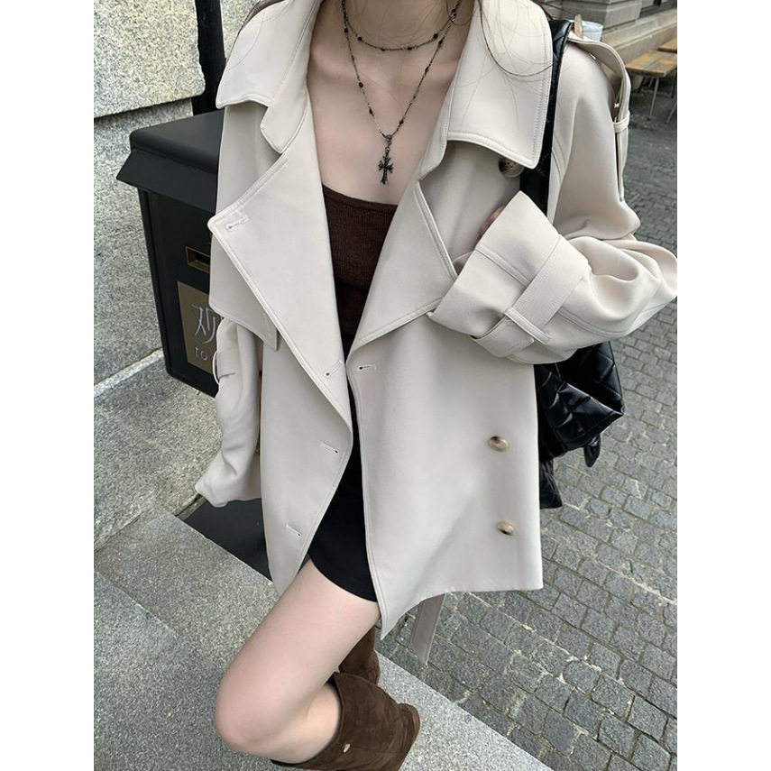 宽松休闲外套高级感翻领短款风衣外套女装秋季宽松廓形双排扣外套