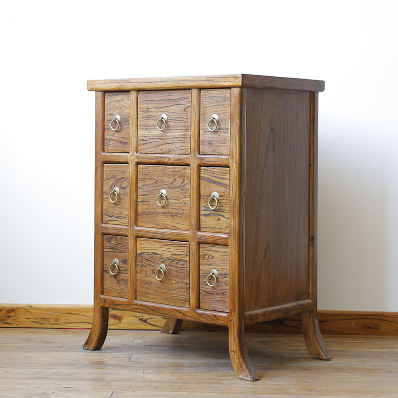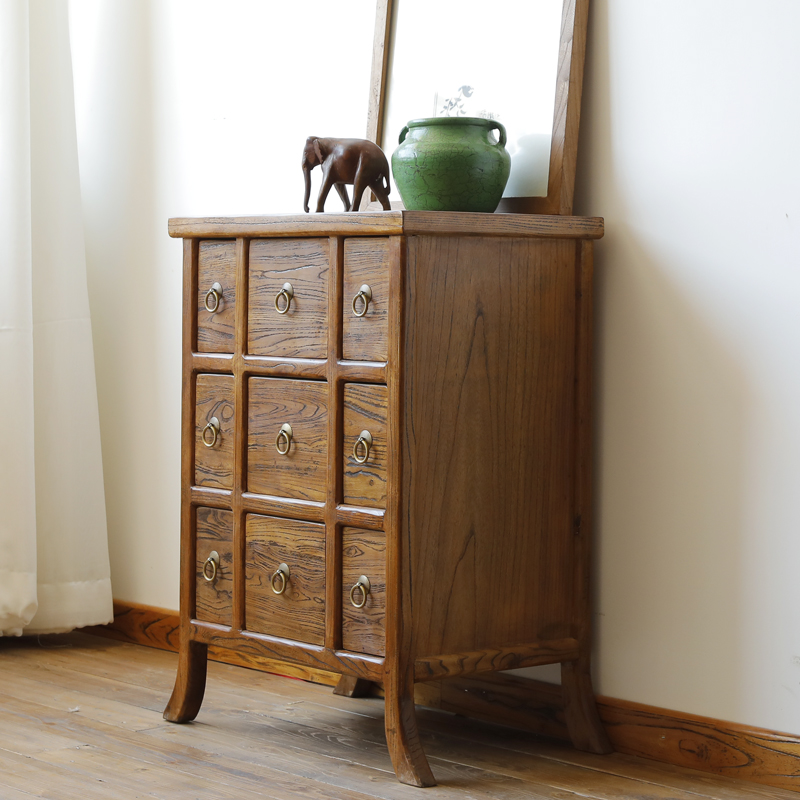 古榆情怀新中式玄关抽屉药柜CD柜老榆木九斗柜实木储物柜简约现代