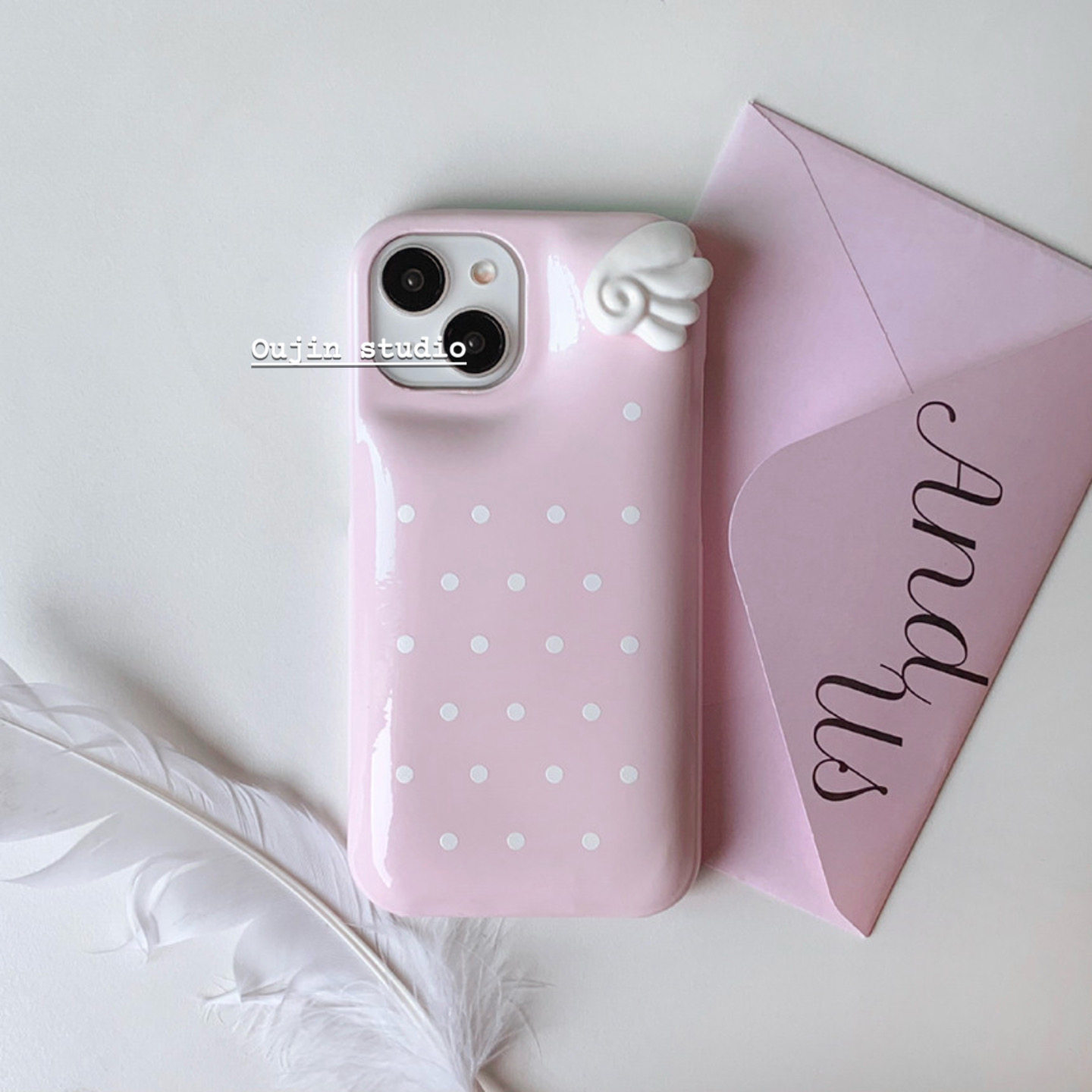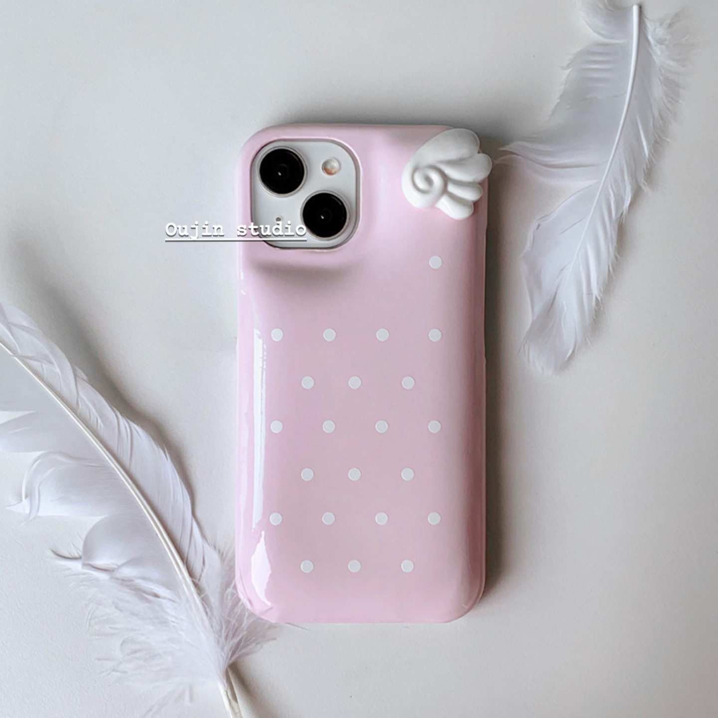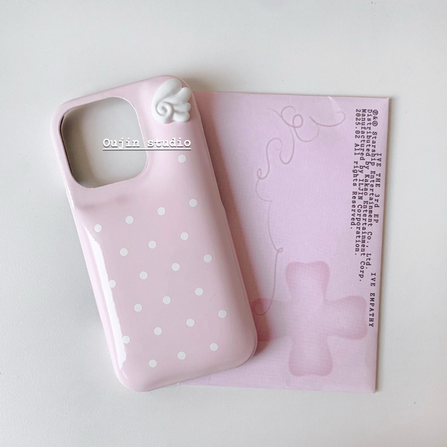 韩系ins风可爱少女心粉色波点立体天使翅膀适用iphone17/air16pro/15pro/14/13肥皂壳填充棉防摔苹果保护套