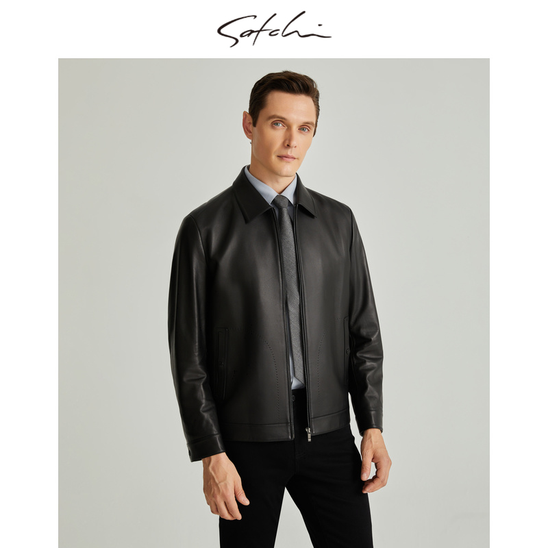 [头层羊皮]SATCHI沙驰男装男士真皮皮衣秋季新款商务皮夹克外套男