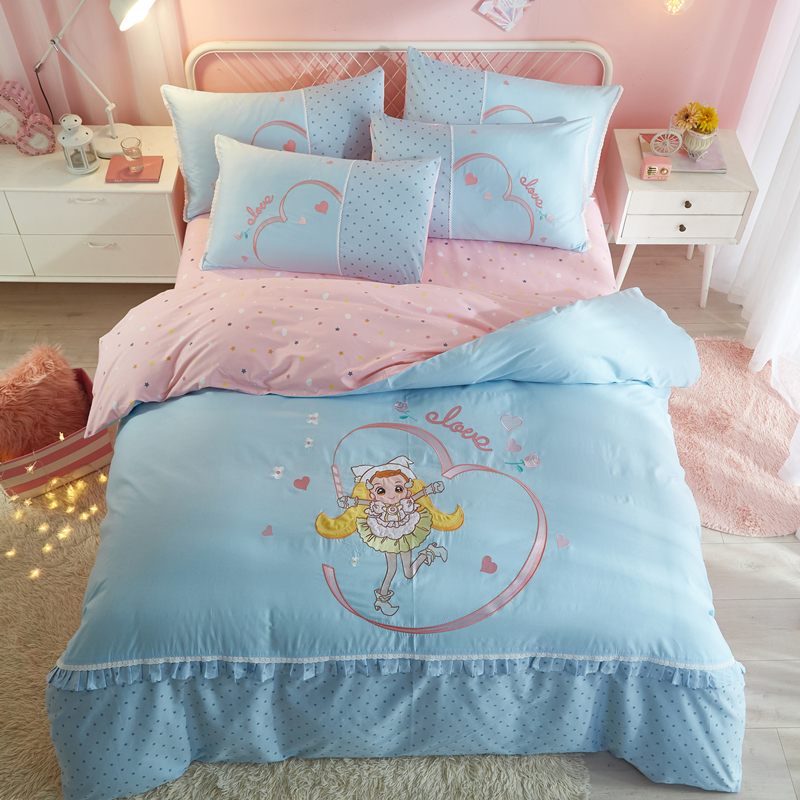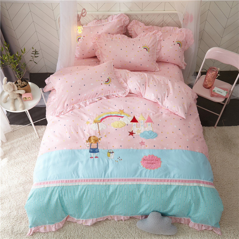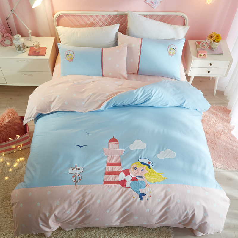 极速卡通四件套女孩公主风儿童三件套男孩全棉被套W床笠床上用品