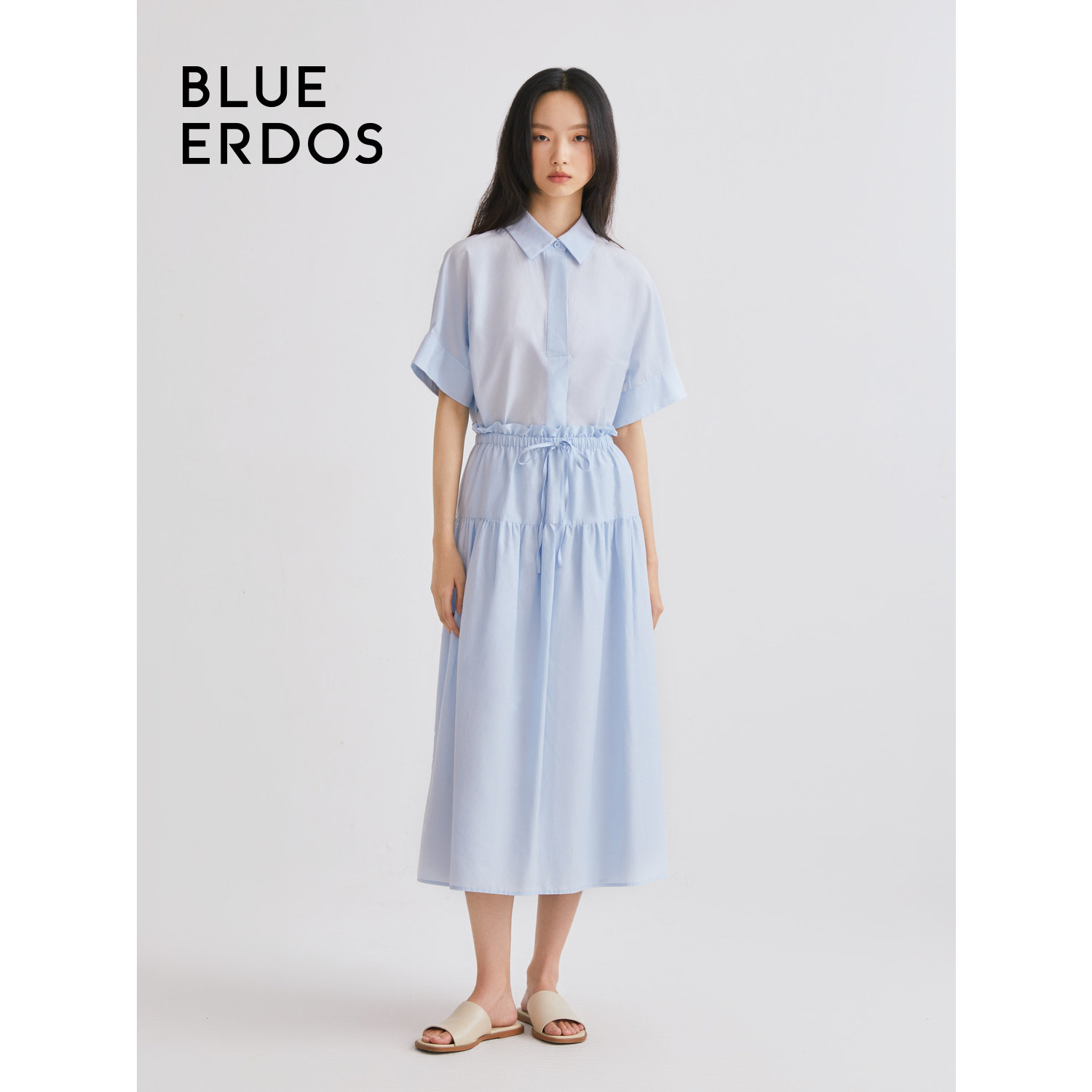 【热卖爆款】BLUE ERDOS简约通勤丝棉混纺女长款半身裙