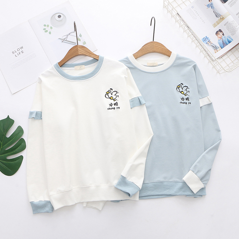 少女卫衣长袖T恤女春秋内搭纯色打底衫韩版潮学生外穿宽松上衣服t
