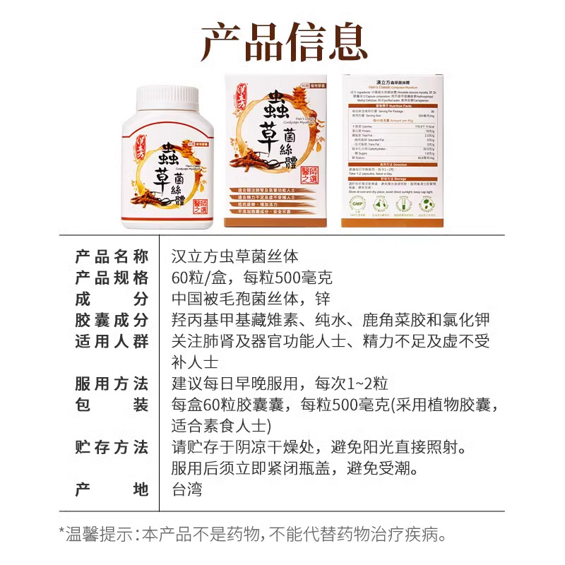 汉立方虫草菌丝体胶囊补肺缓解鼻敏增强免疫虫草胶囊正品旗舰店