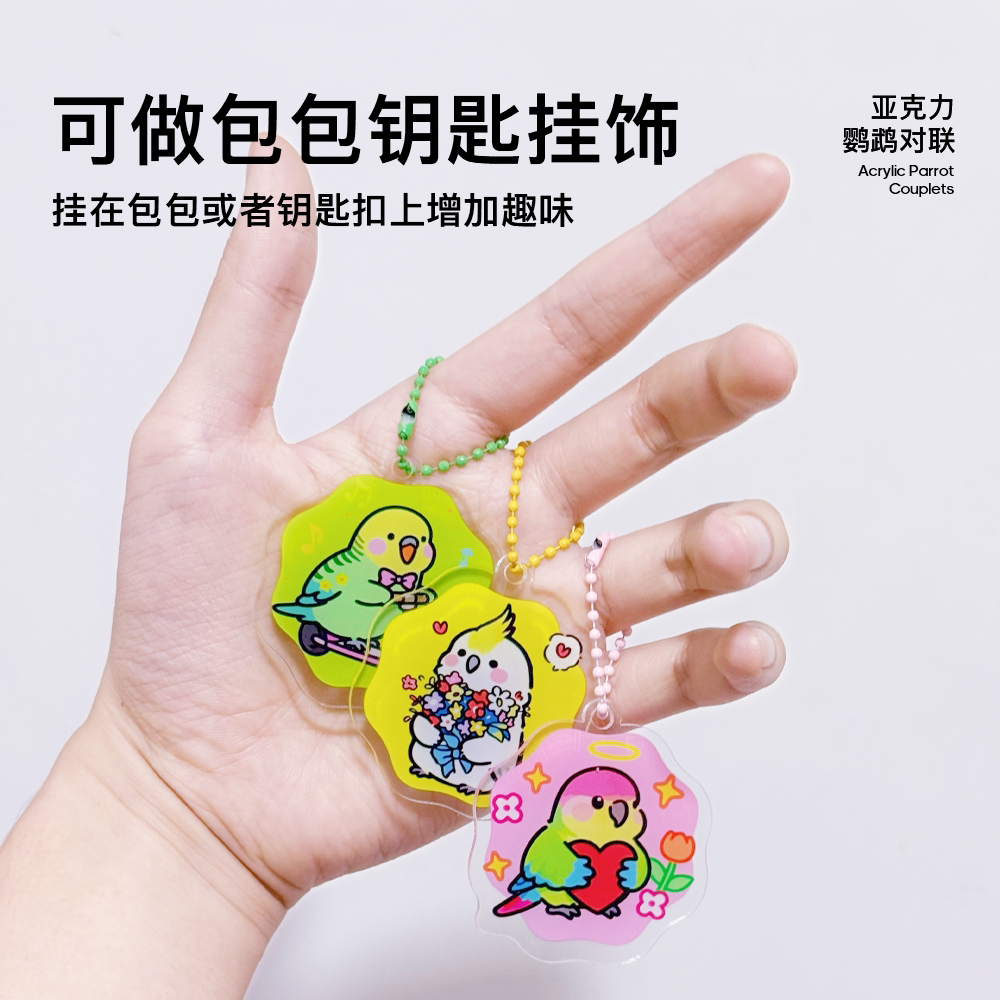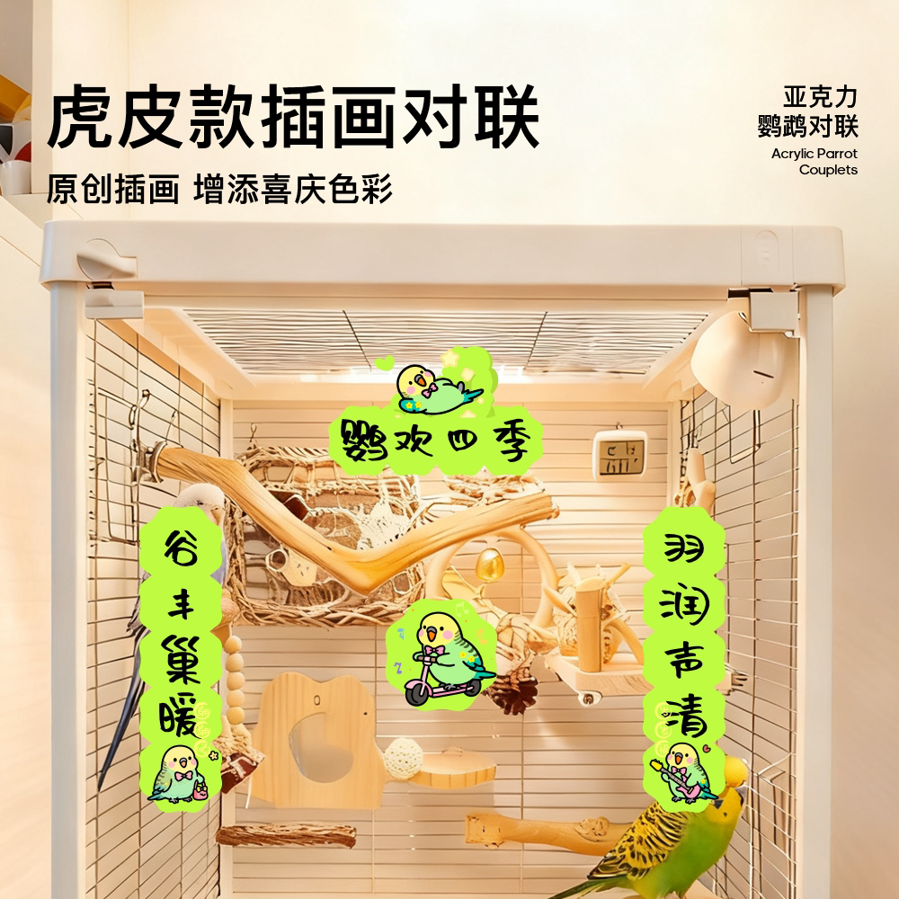 青松宠鹦鹉亚克力对联虎皮玄凤牡丹插画玩具新春对联鸟笼造景装饰