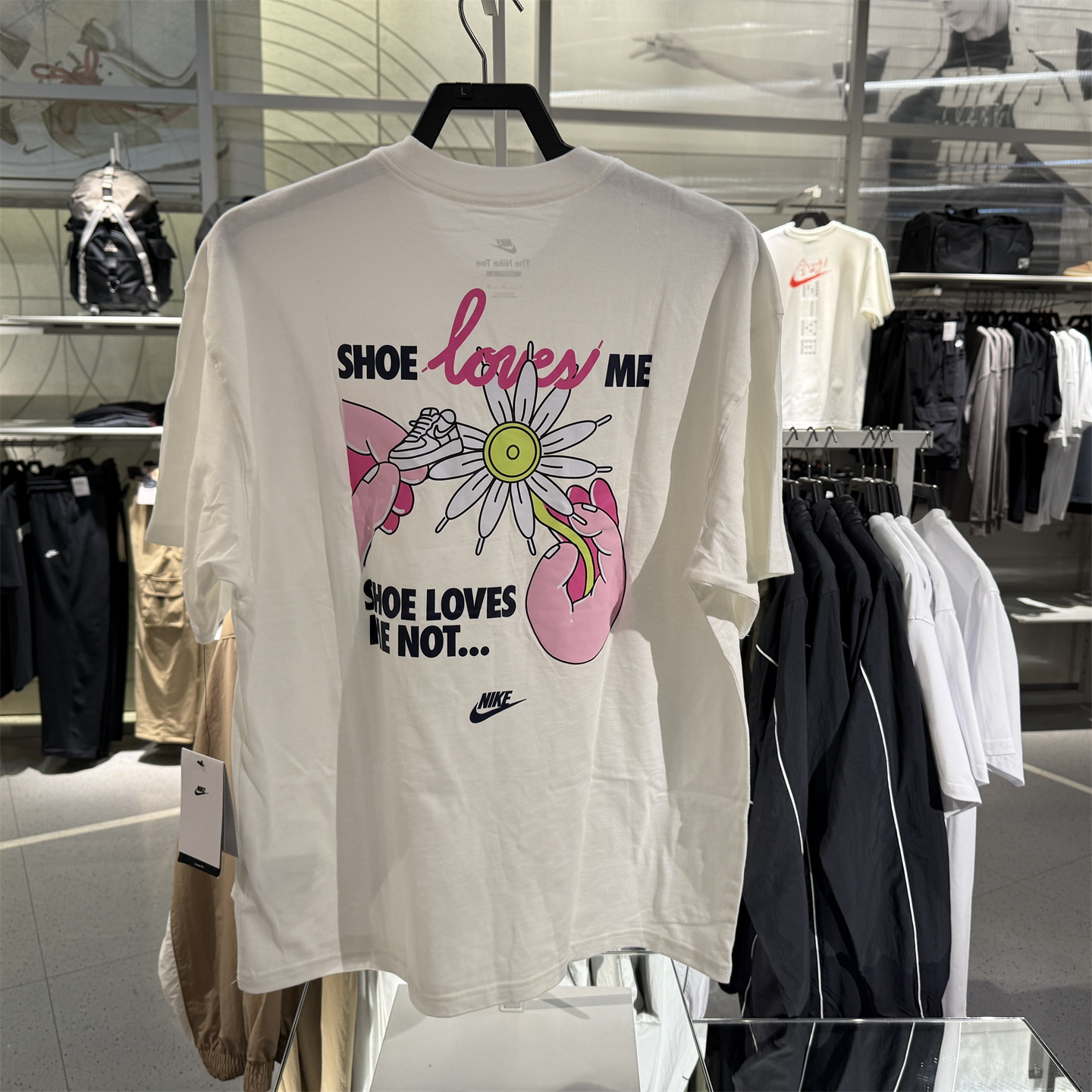 Nike耐克短袖男装棉质宽松背标印花情人节休闲运动T恤 HJ0585-100
