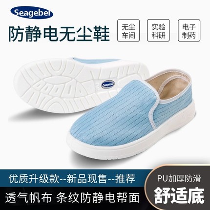 防静电无尘鞋防尘洁净PU加厚软底透气舒适帆布鞋防护工作鞋蓝白色