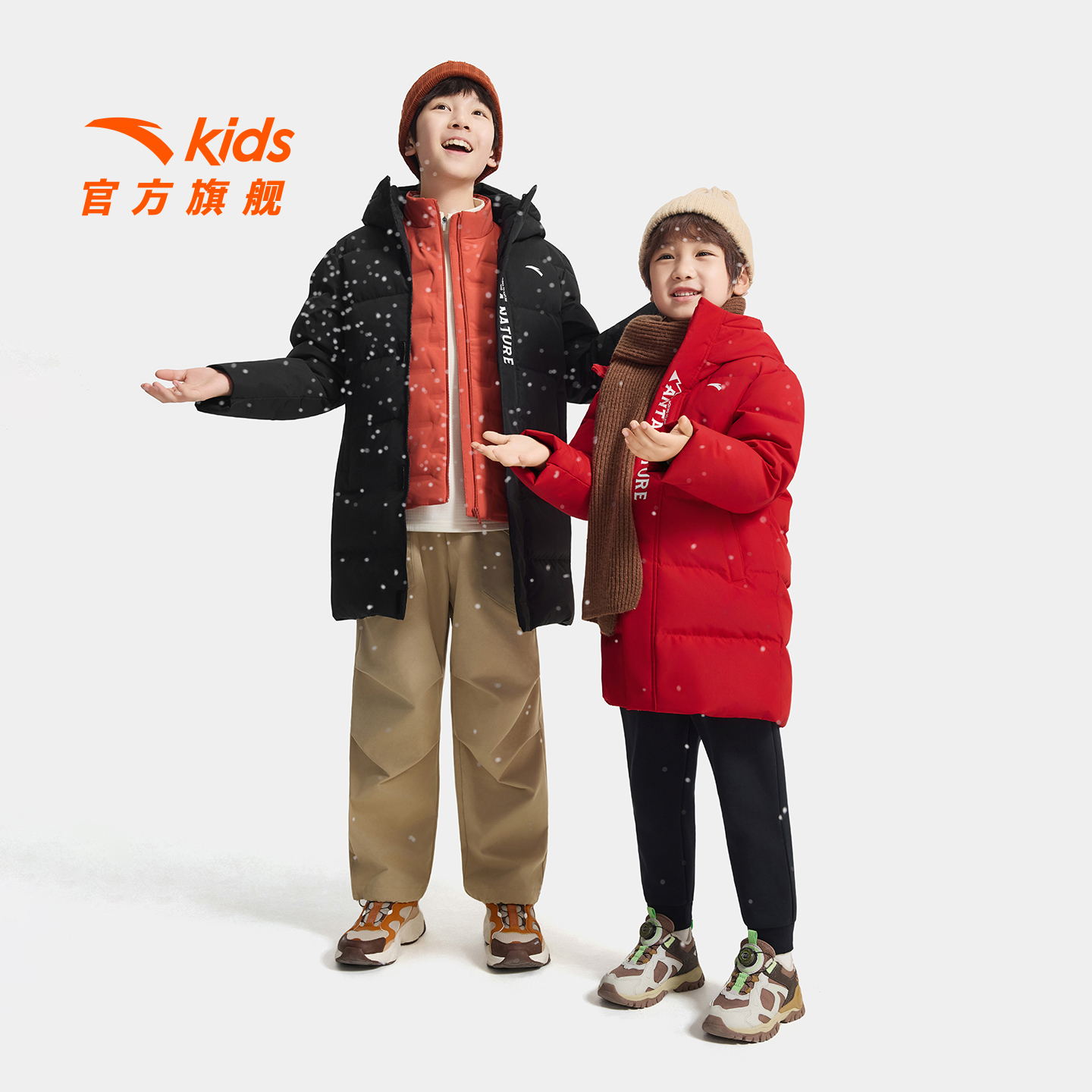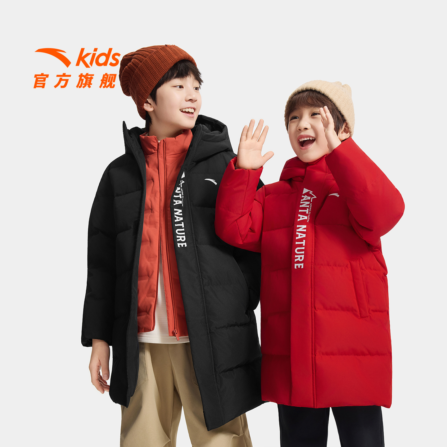 安踏儿童羽绒服男童长款羽绒加厚保暖棉袄新年红热返中长款羽绒服