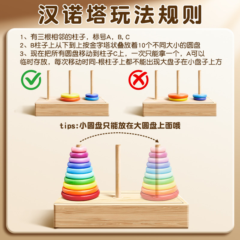 汉诺塔小学生10层比赛专用大号5六7八8十6阶儿童益智思维训练玩具