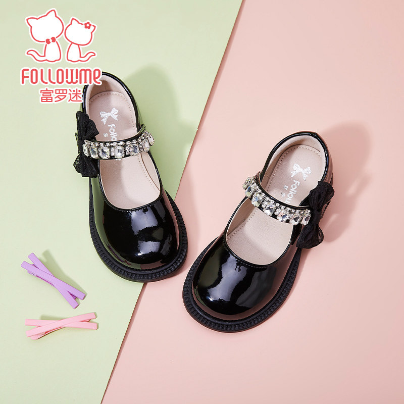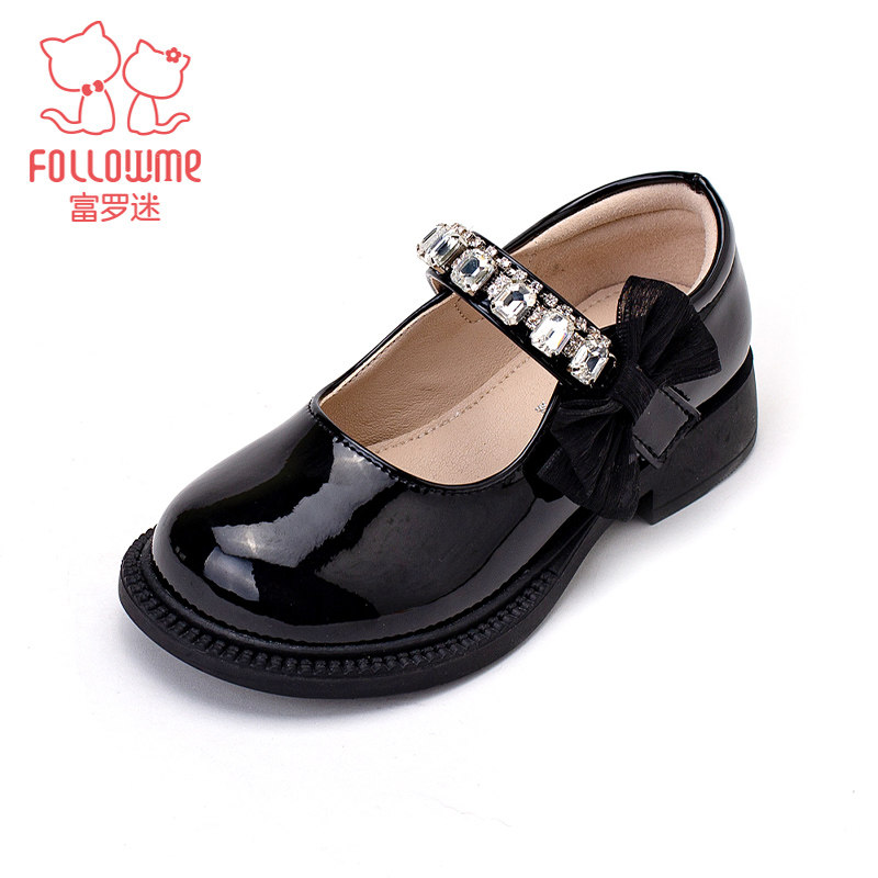 富罗迷公主鞋女童皮鞋春秋新款演出礼服鞋小女孩软底洋气黑色单鞋