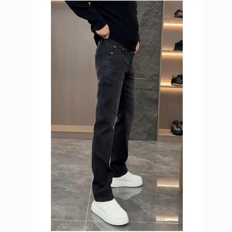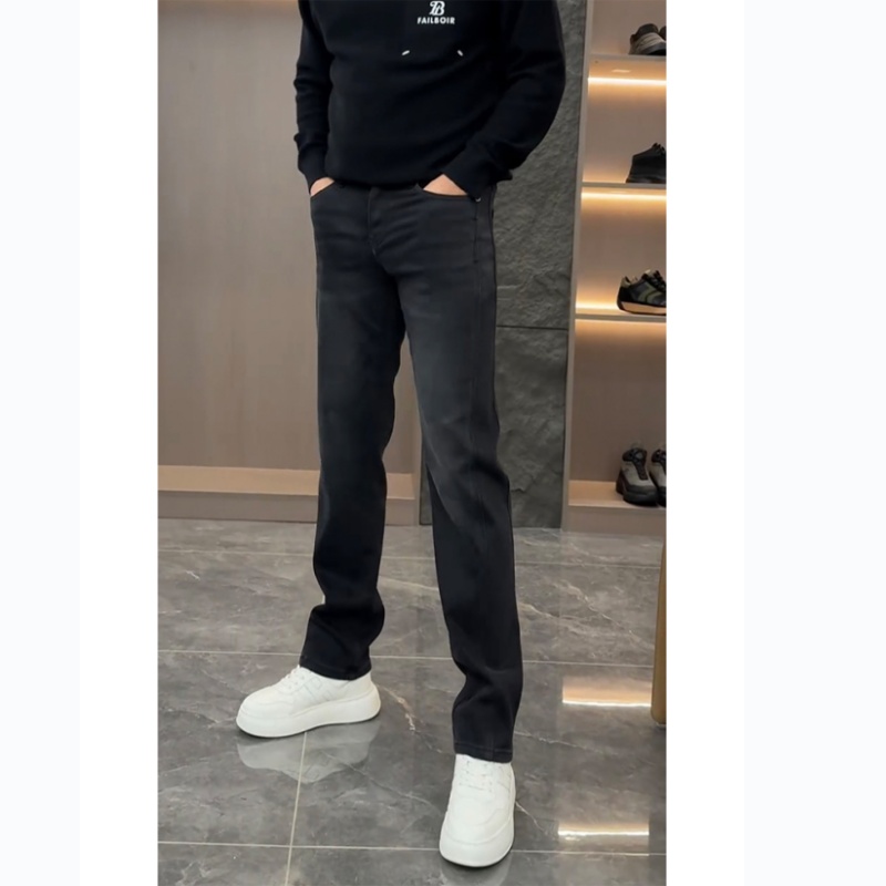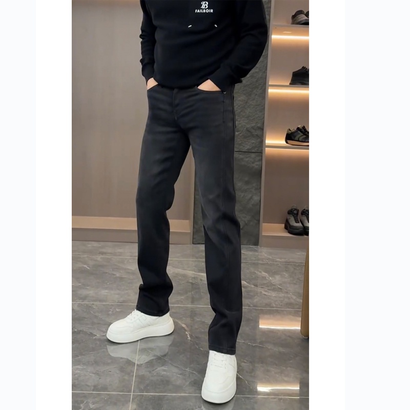 秋季新款男士高档水洗黑色休闲牛仔裤欧货气质百搭微阔腿直筒长裤