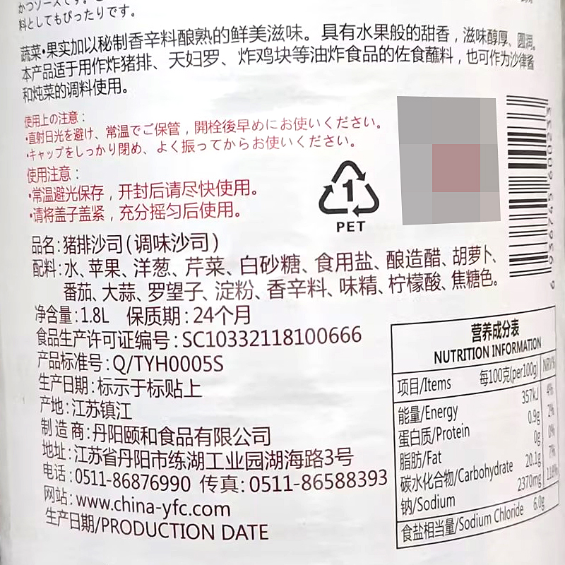 整箱铃鹿猪排沙司1.8L炸猪排日料