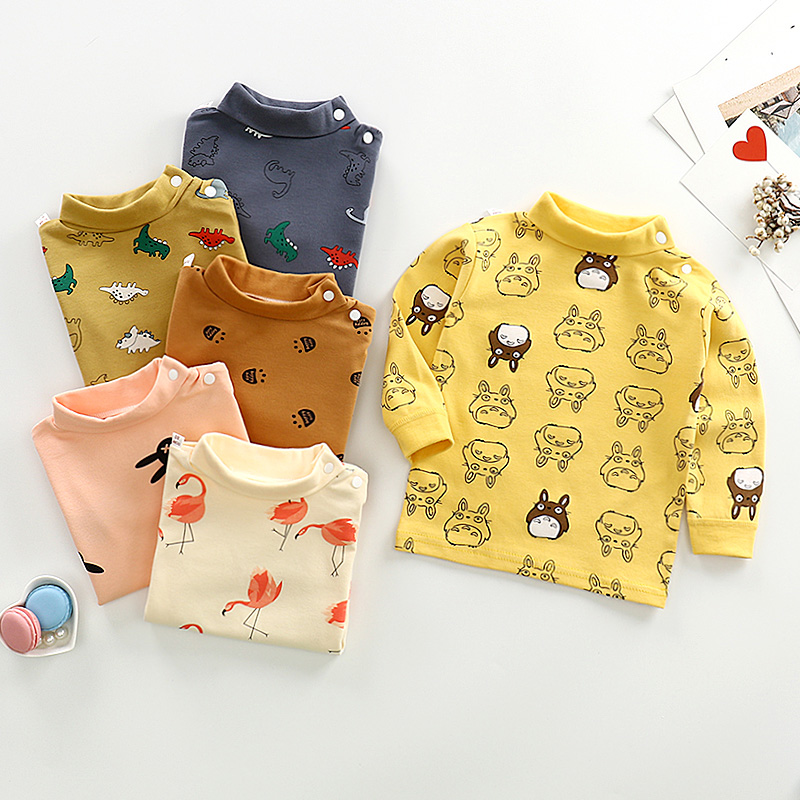 男童高领长袖上衣秋冬儿童衣服宝宝1岁3打底衫秋衣卡通婴儿保暖衣