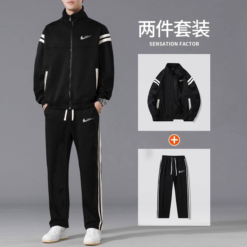 耐克顿男士休闲运动套装秋冬季卫衣外套直筒长裤百搭宽松两件套帅