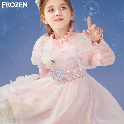 女童连衣裙2025秋冬装新款儿童爱莎公主裙毛衣裙洋气网纱裙童装