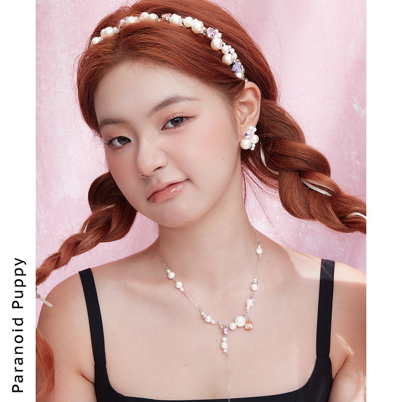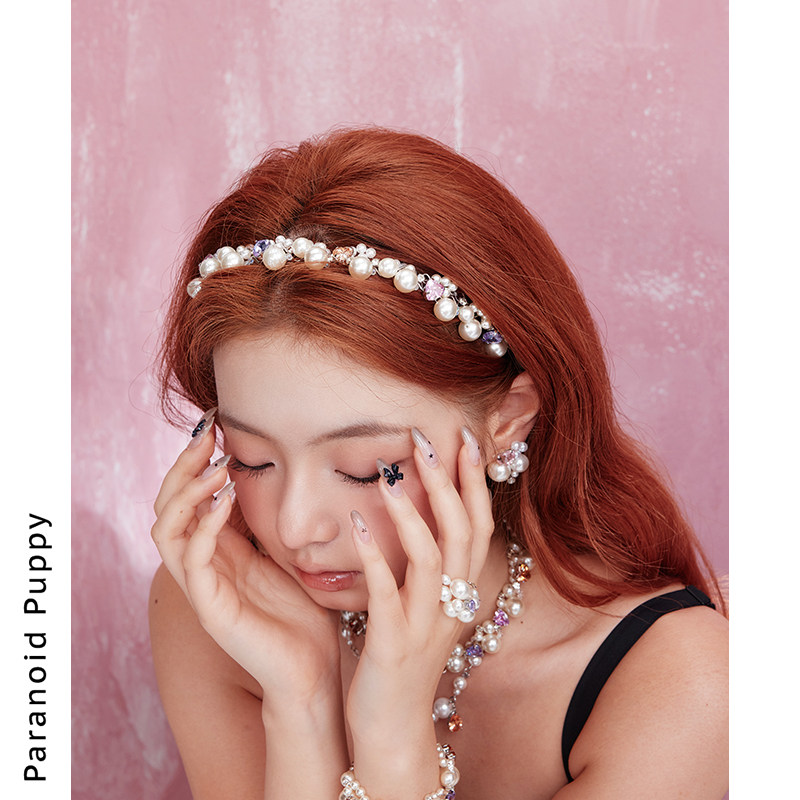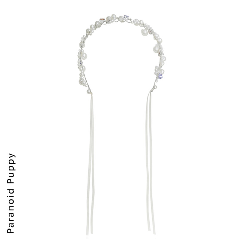 PP饰品《绫》马卡龙爱心珍珠发箍女小众设计感复古丝带头饰发饰