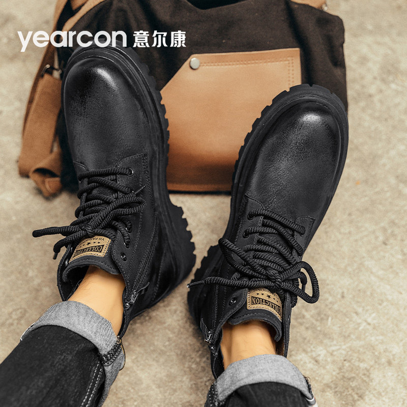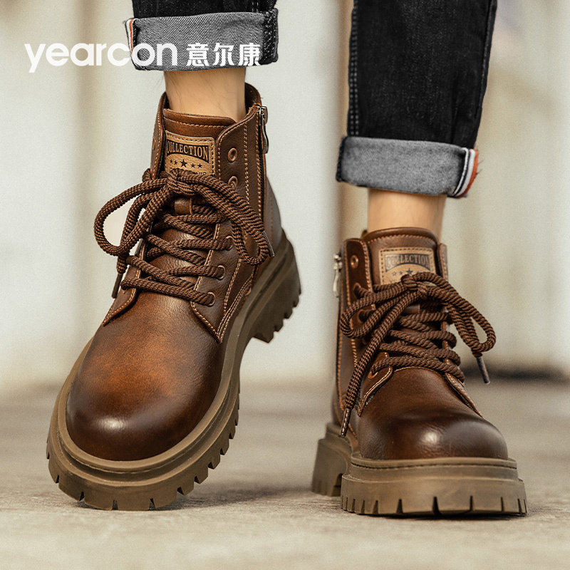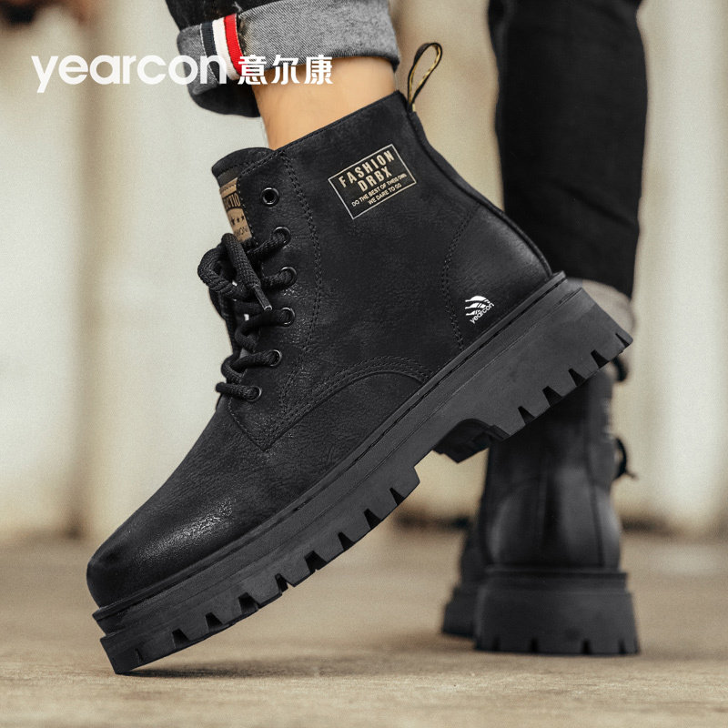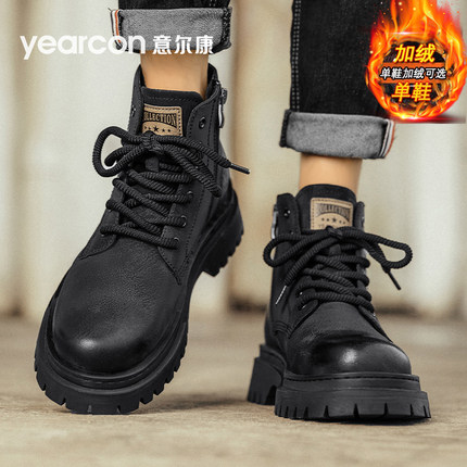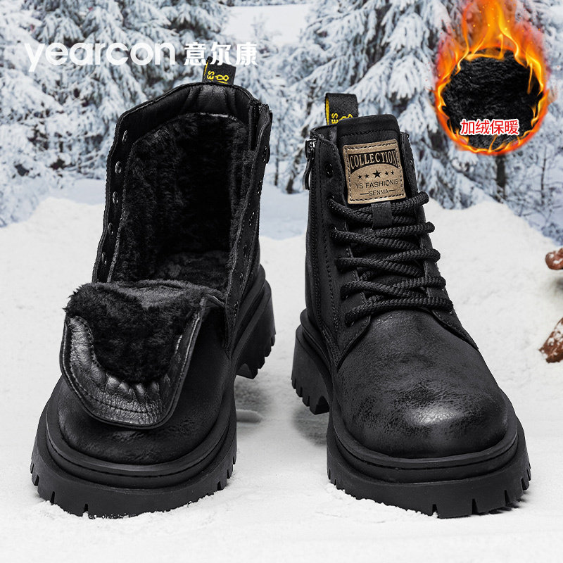 意尔康马丁靴男士2026新款冬季爆款加绒棉登山鞋英伦风高帮皮短靴