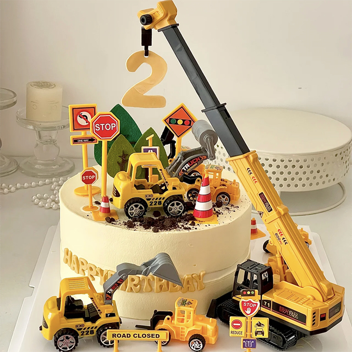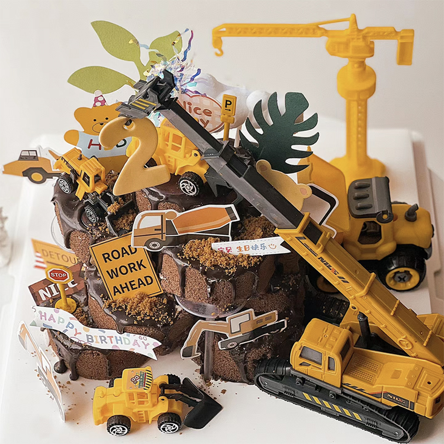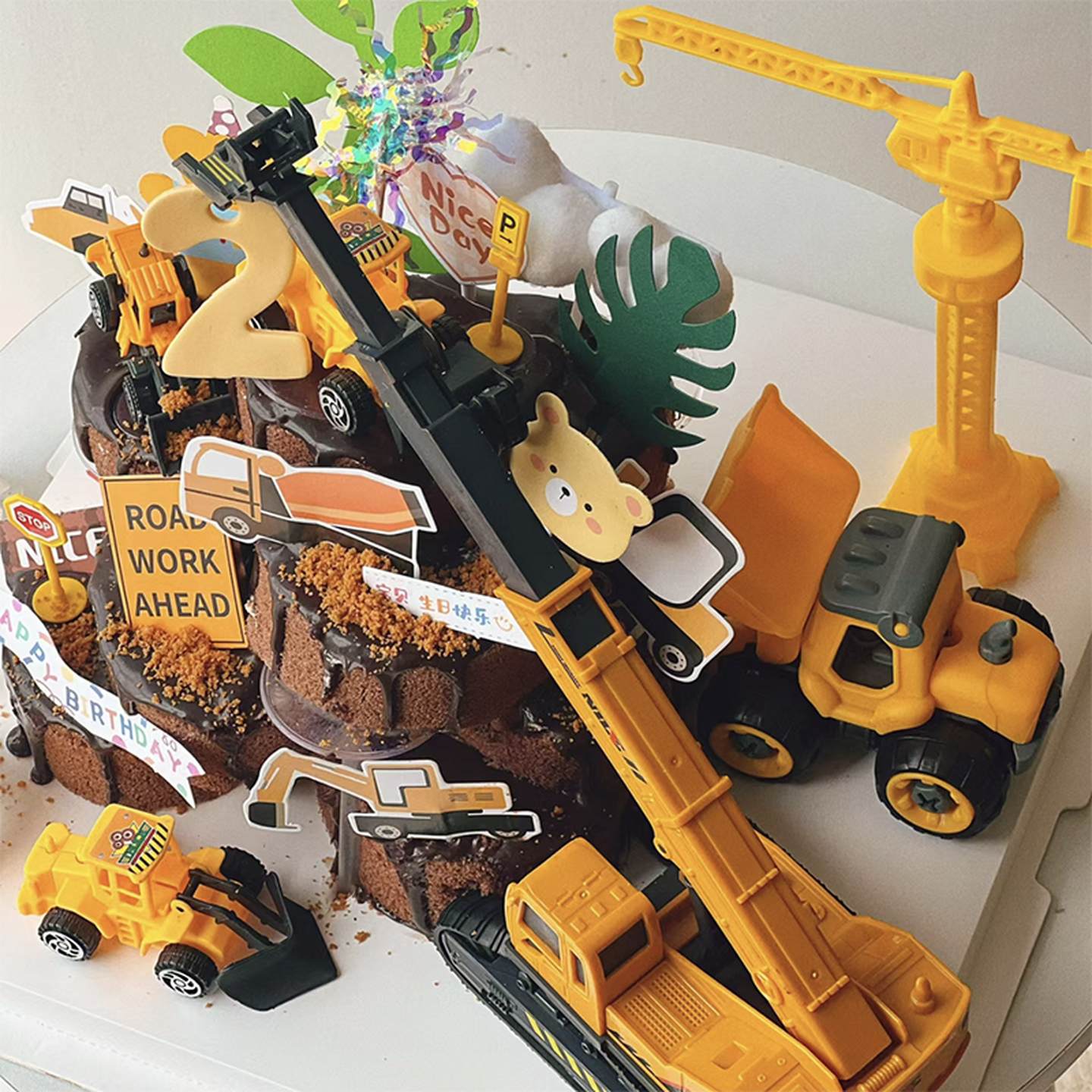 网红烘焙生日蛋糕装饰摆件儿童推土挖掘机工程车男孩宝宝生日插件