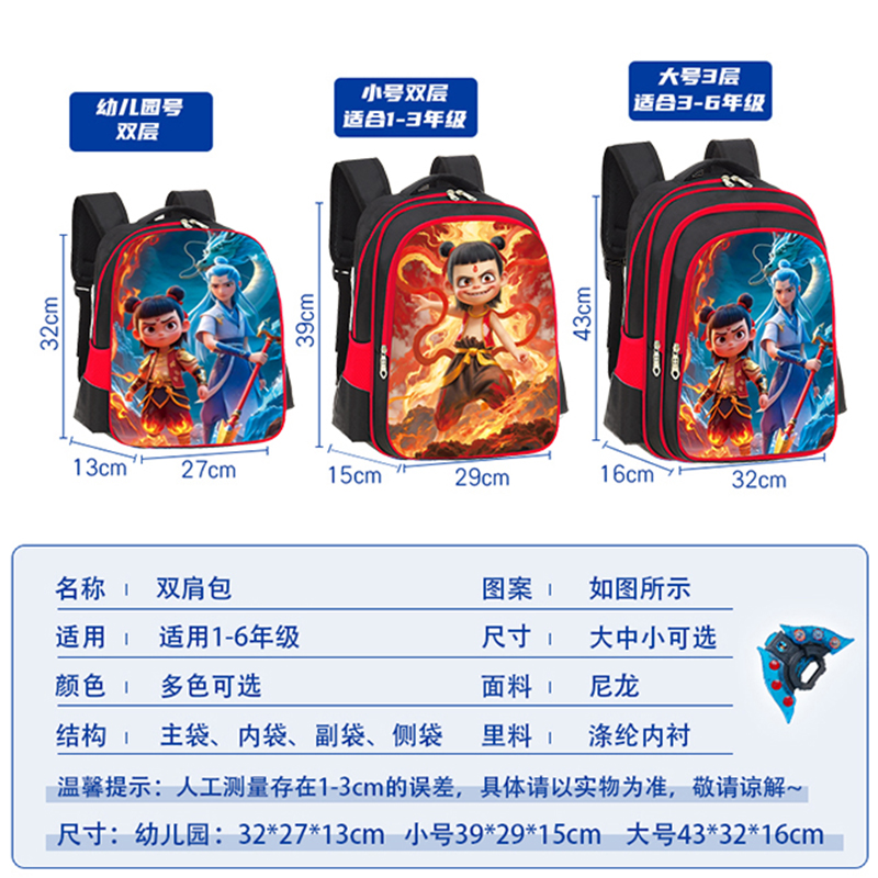 小学生女可爱轻便卡通大容量双肩背包哪吒儿童幼儿园小朋友敖丙
