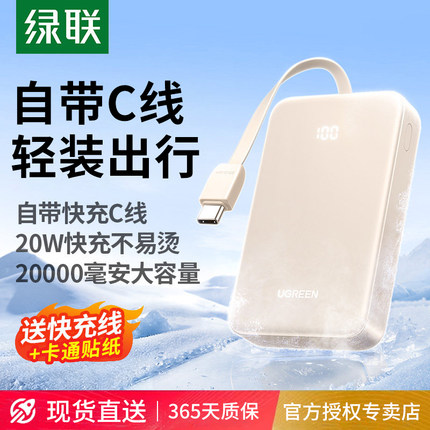 【3C认证】绿联2025新款20W充电宝20000毫安10000自带线适用iPhone17/16安卓手机快充大容量移动电源可上飞机