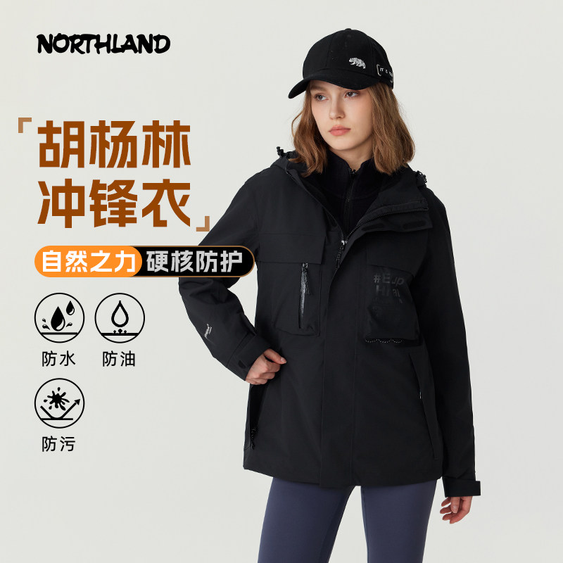 诺诗兰三合一冲锋衣24新款男女户外防风防泼水徒步登山服保暖外套