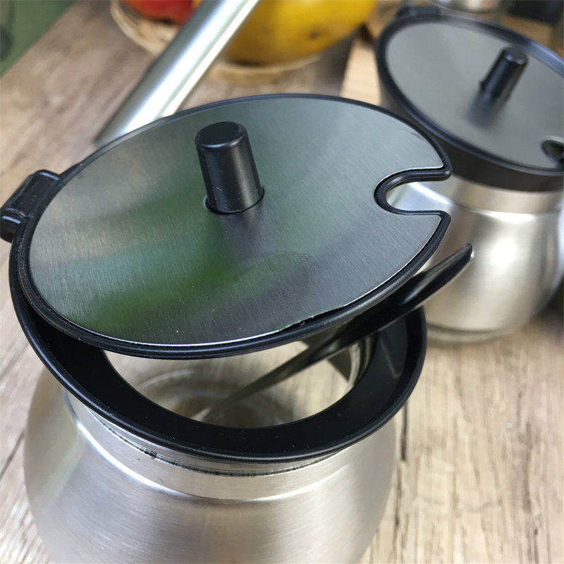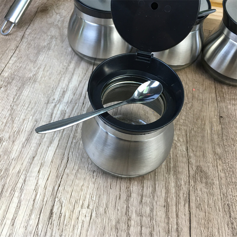 不锈钢套皮调味罐玻璃辣椒罐餐厅辣椒酱罐盐罐酱料瓶带盖果酱罐