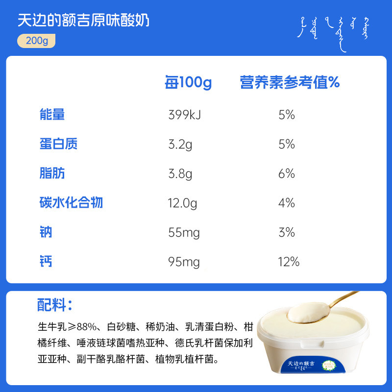 兰格格草原酸奶天边的额吉原味200g*12盒低温酸牛奶内蒙