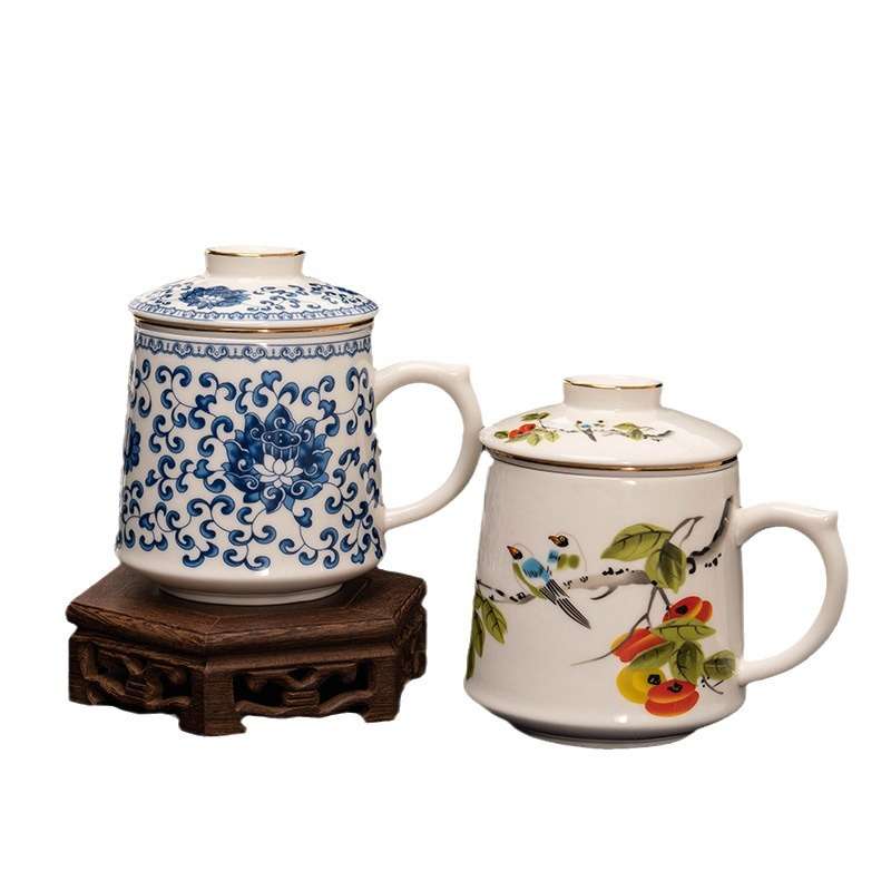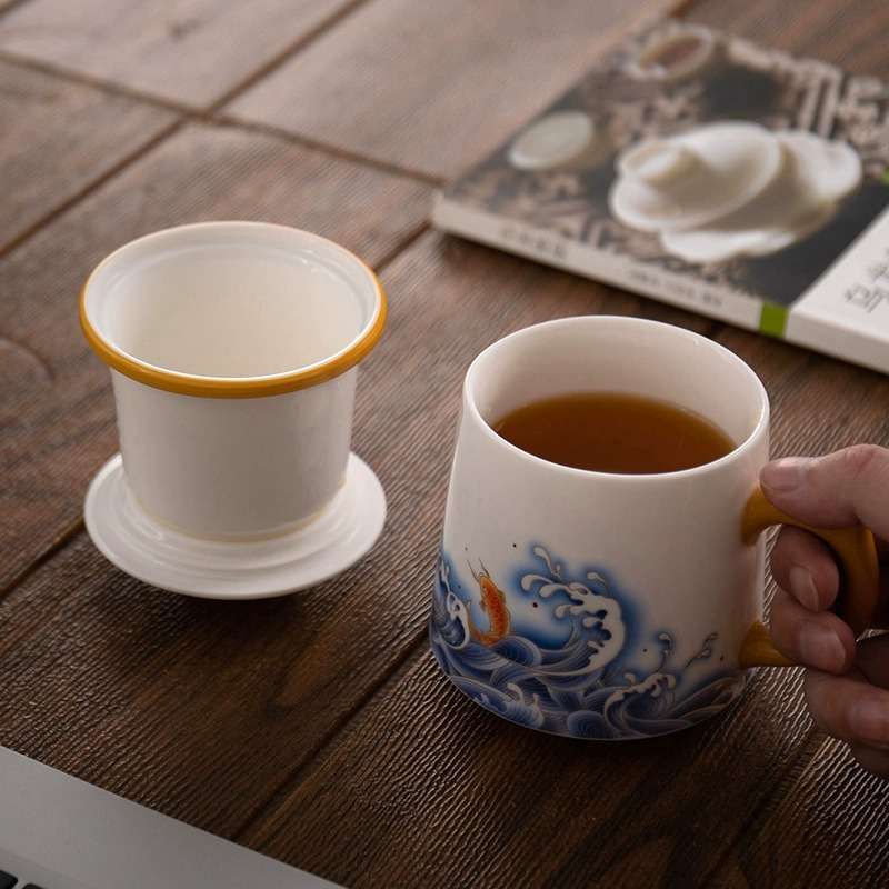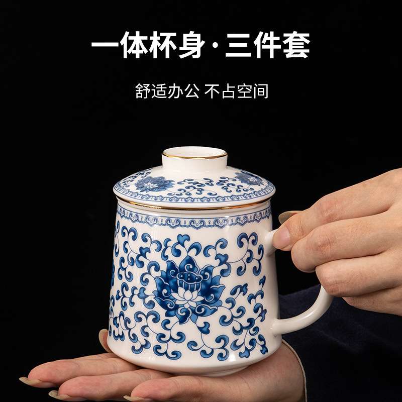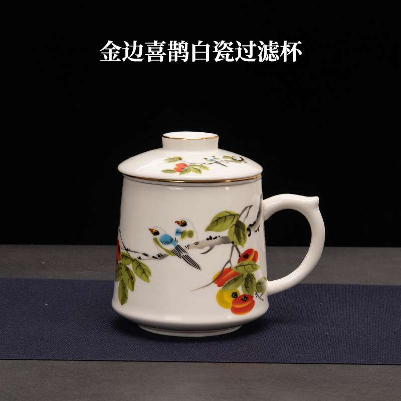 羊脂玉陶瓷茶水分离个人专用泡茶杯子男士办公室水杯过滤高档带盖