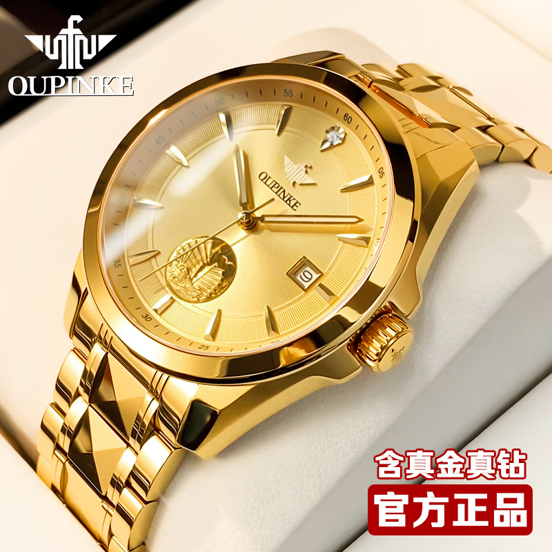 高配进口芯含真黄金真钻瑞士认证正品牌男士手表机械表男款全自动