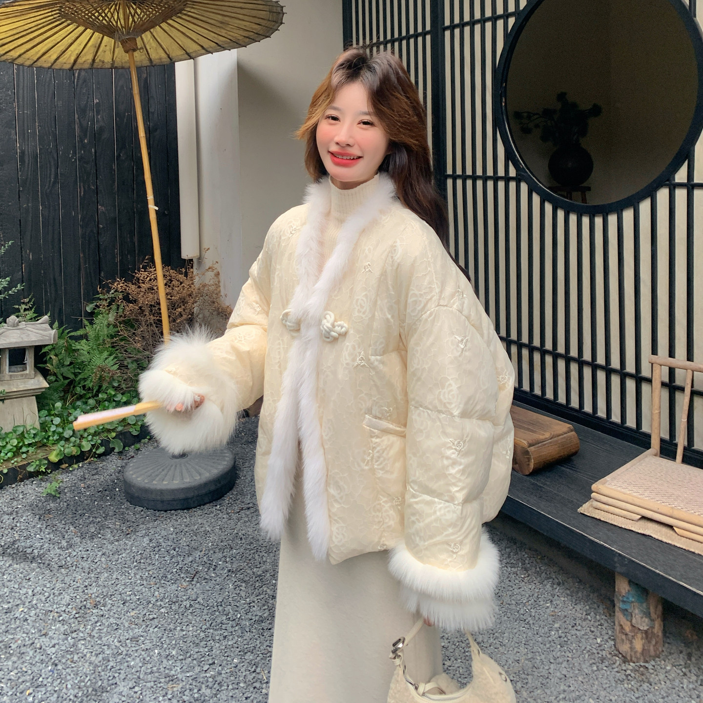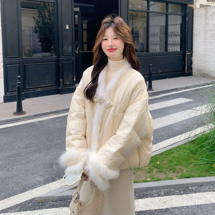 奶黄色超好看新中式国风盘扣羽绒服女2025冬新款90白鸭绒轻暖外套