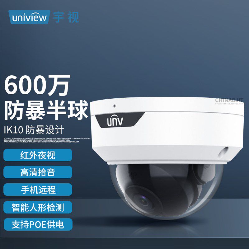 unv宇视600万防暴半球监控器录音智能夜视高清摄像头POE供电家用