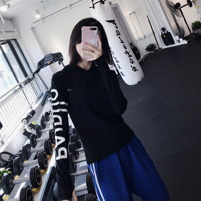 连帽健身房运动上衣女宽松速干健身服显瘦跑步卫衣网红长袖瑜伽服
