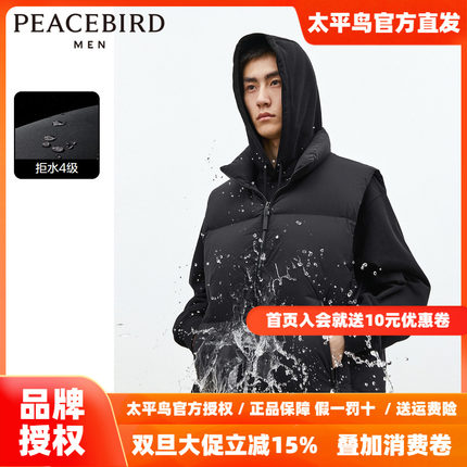 太平鸟男装 羽绒服马甲男2025年冬季新款潮流黑色宽松保暖背心