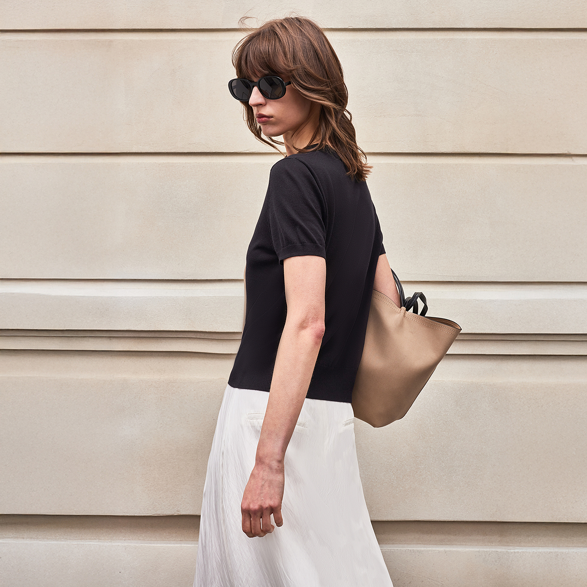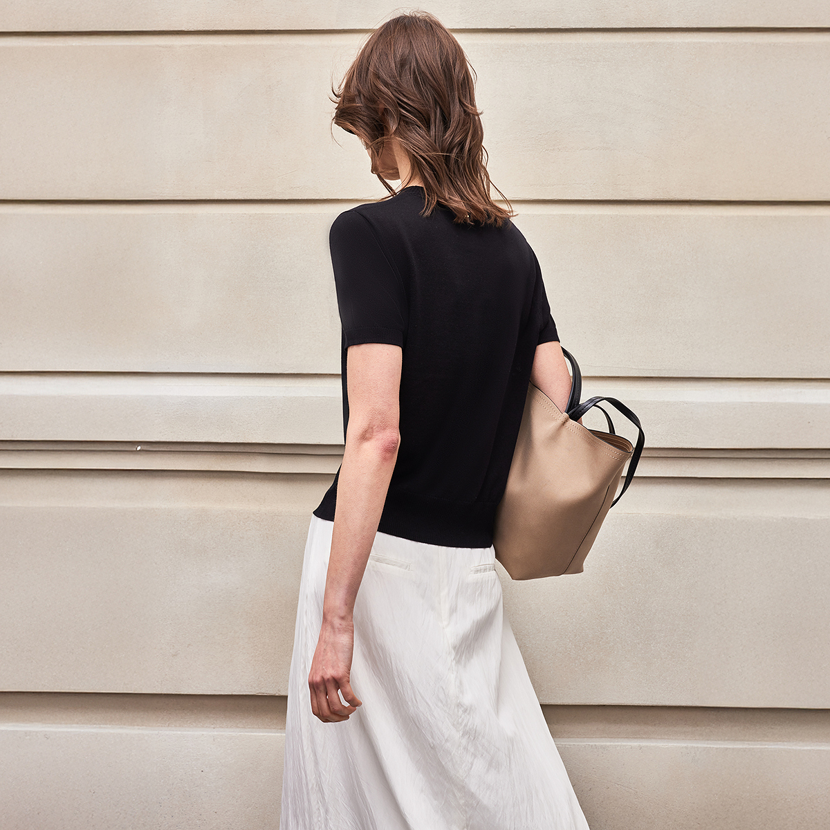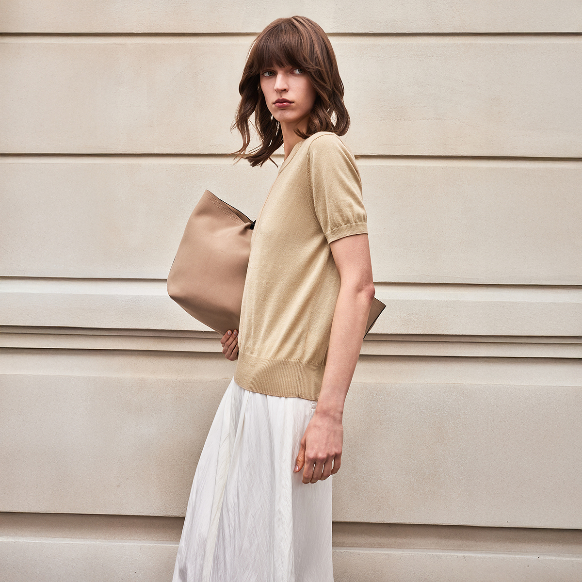 BCBG 2025夏新品 莱赛尔醋纤圆领轻薄多色打底针织衫短袖上衣