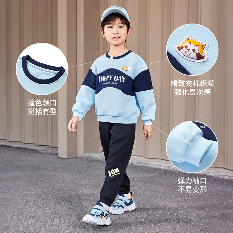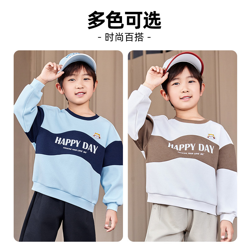 361男童圆领卫衣撞色新品2025秋春印花上衣中小童套头衫N52534301
