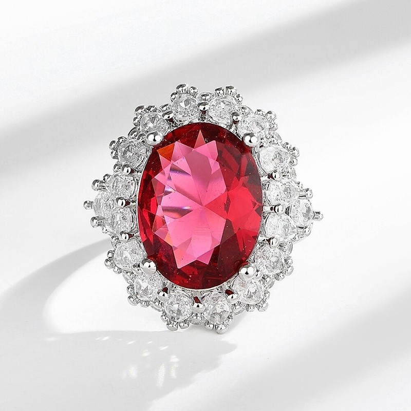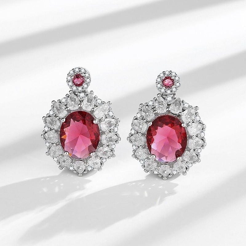 欧美时尚奢华仿真红宝石耳环戒指项链女个性气质高端名媛珠宝套装