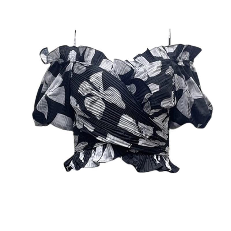 大码胖mm法式复古一字肩衬衫女夏新款遮肉时尚设计感小众短款衬衣