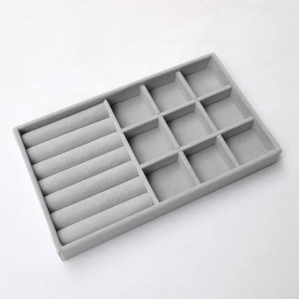 灰色放抽屉里绒布托盘首饰盒小号珠宝耳钉耳环戒指项链收纳盒分隔