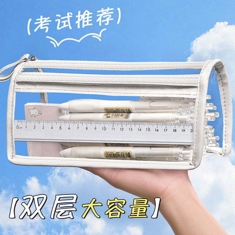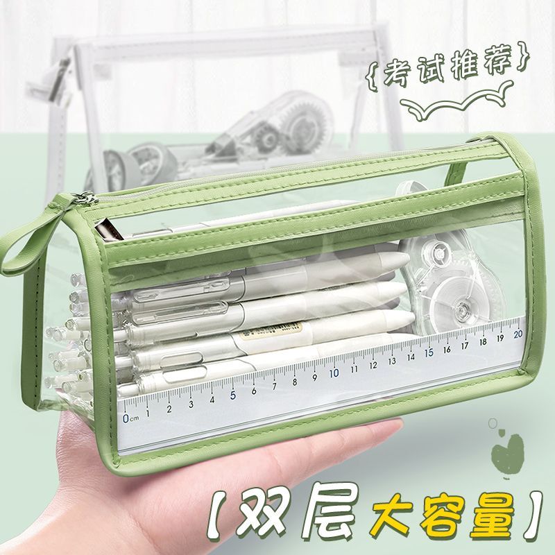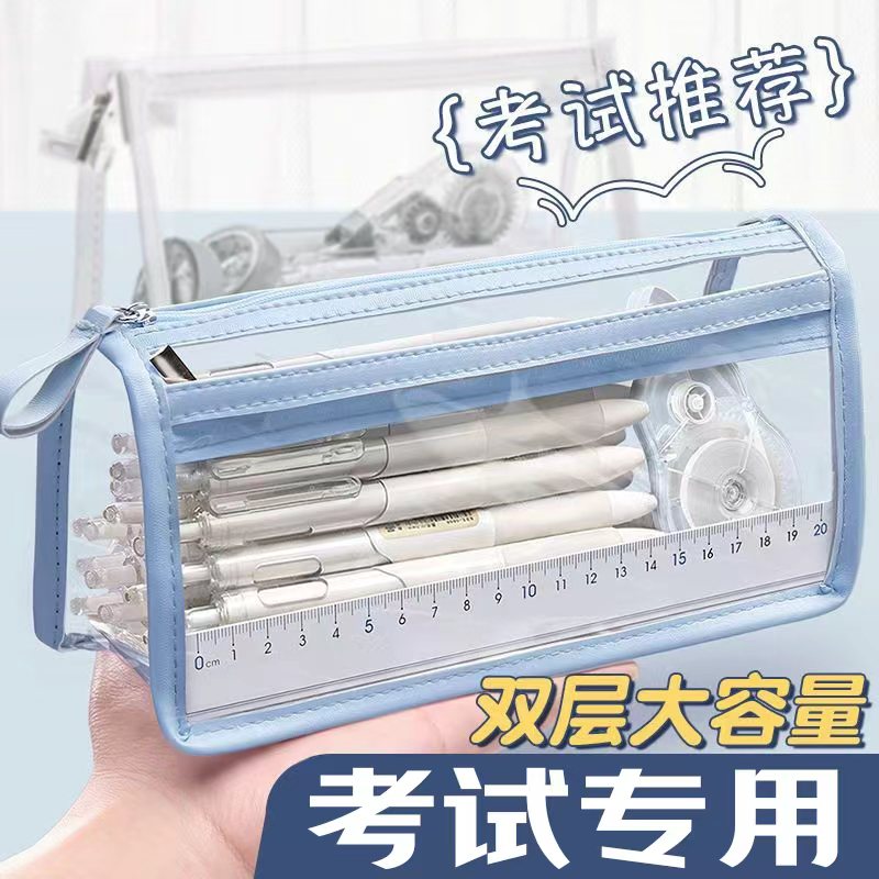 透明笔袋ins初高中生简约双层日系文具铅笔盒小学生女容量大小众